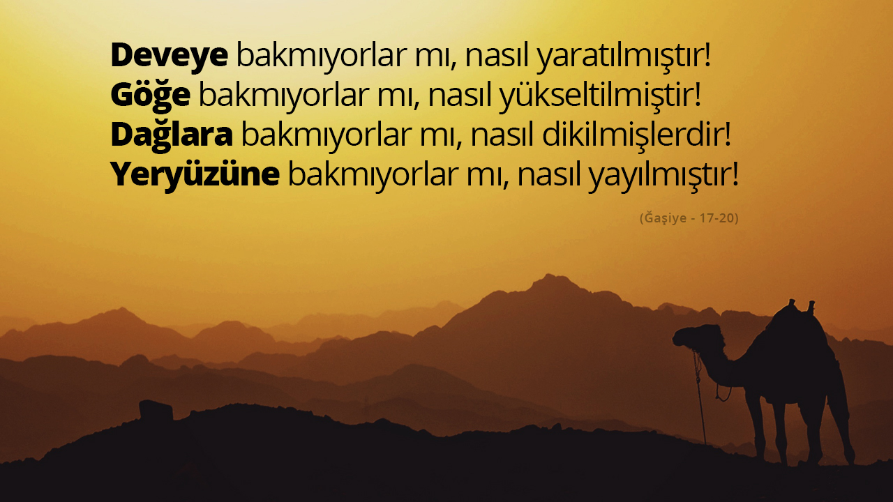 - Diyanet İşleri Başkanlığı: Deveye bakmıyorlar mı, nasıl yaratılmıştır!
