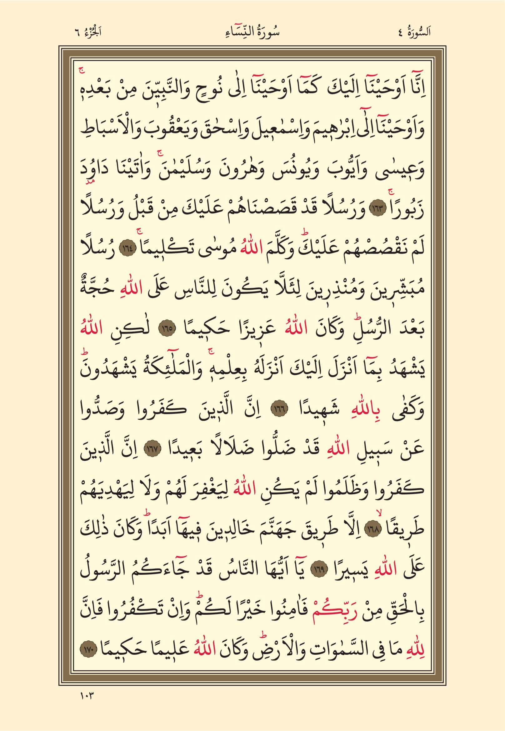 6. Cüz, 103. Sayfa, Nisa Suresi | Kuran-ı Kerim Oku