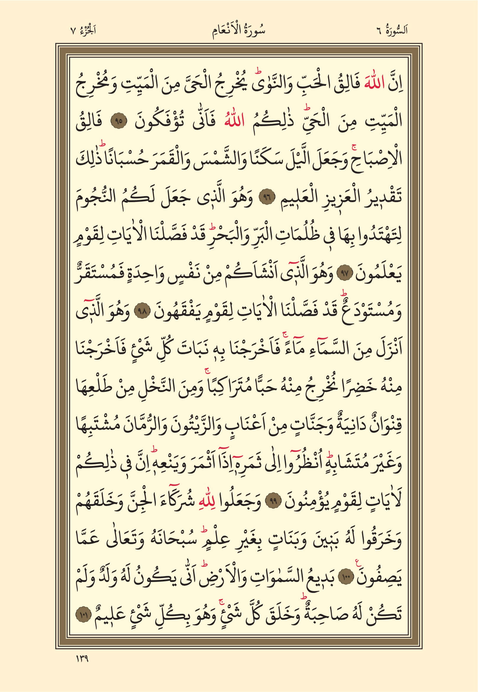 7. Cüz, 139. Sayfa, Enam Suresi | Kuran-ı Kerim Oku