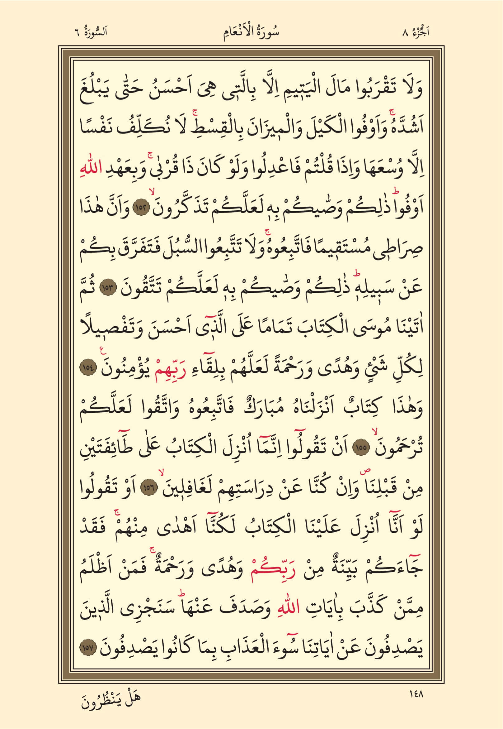 Enam Suresi – 148. Sayfa, – 8. Cüz - 2. Hizb