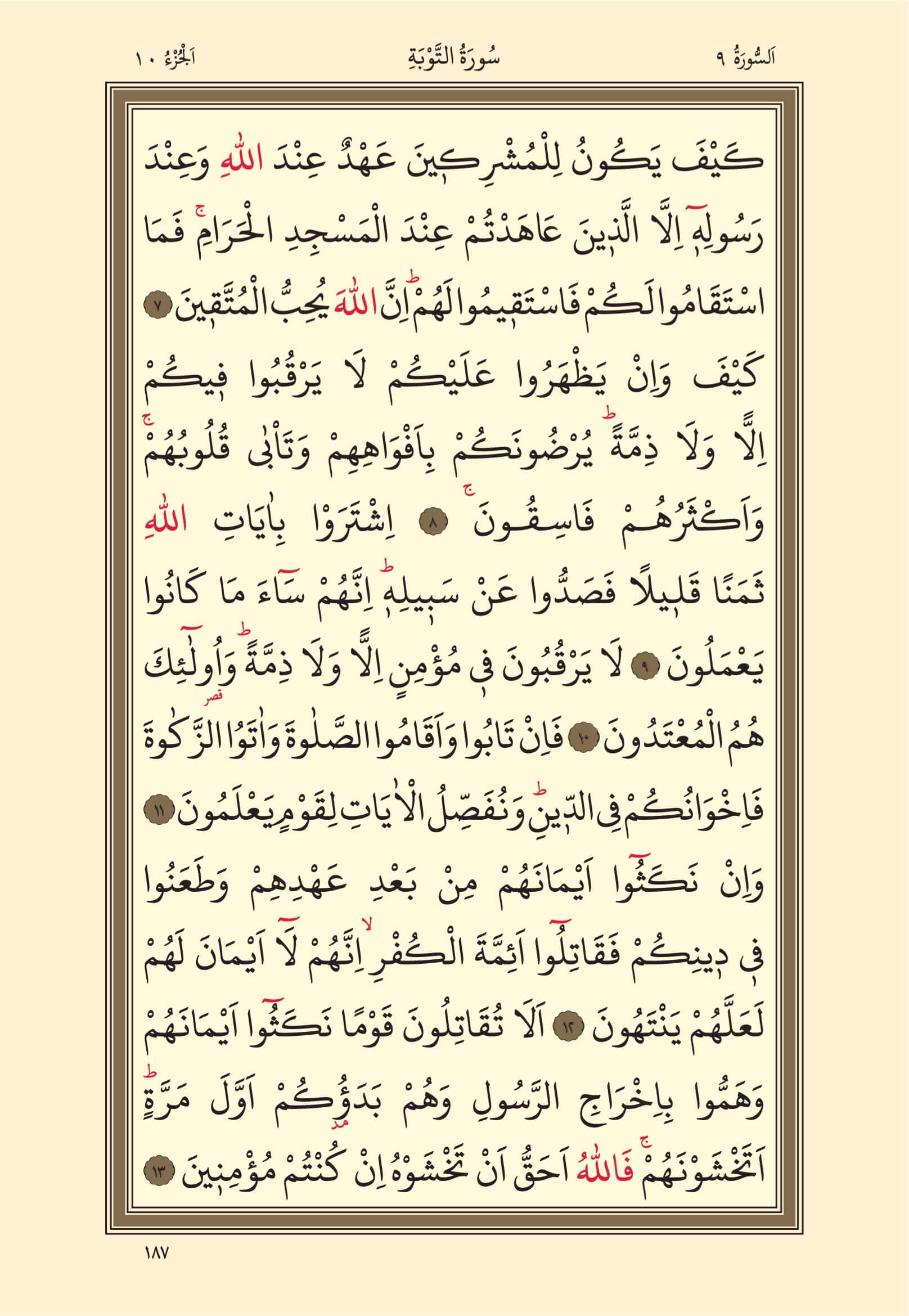 Tevbe Suresi – 187. Sayfa, – 10. Cüz - 2. Hizb