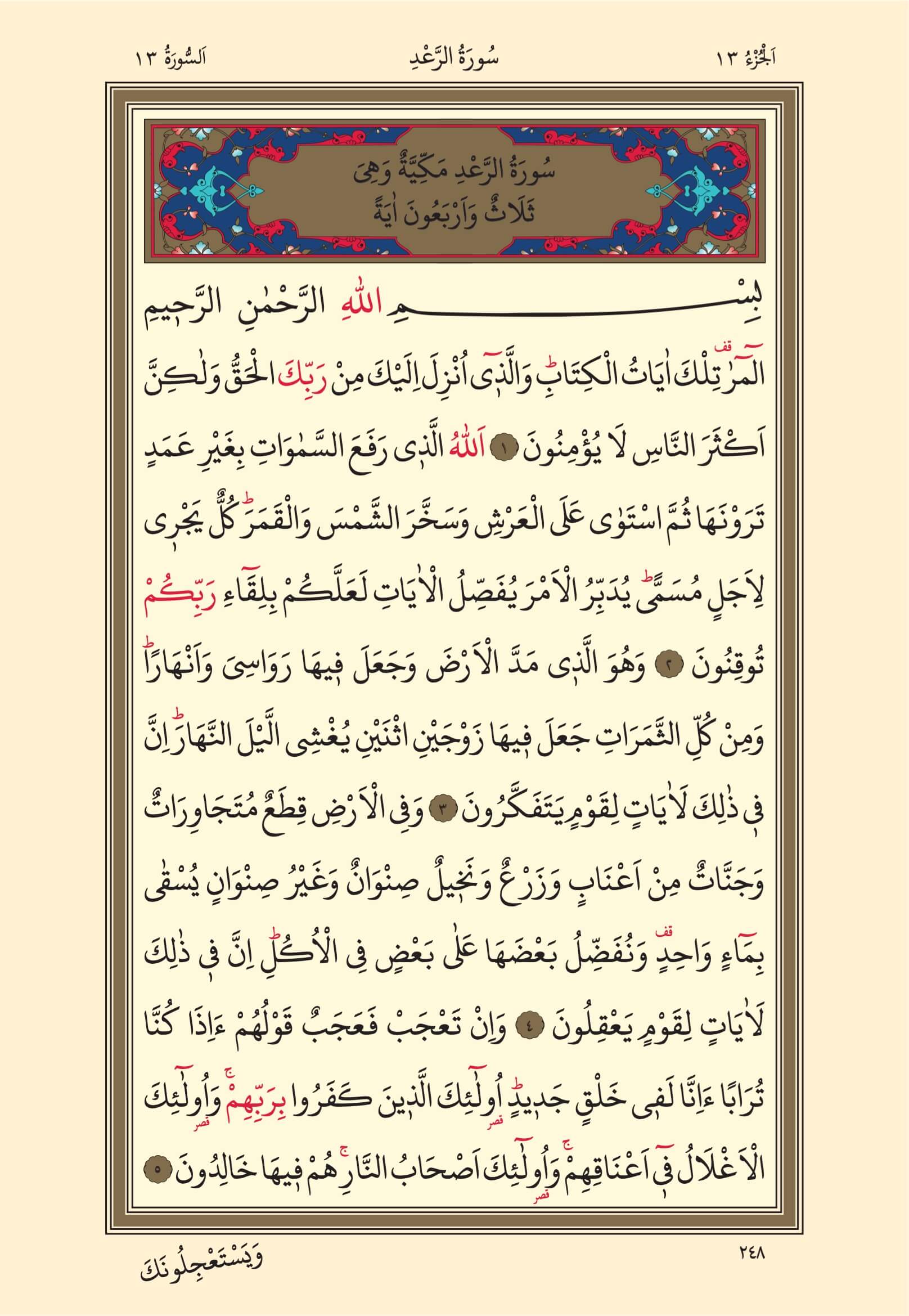 13. Cüz, 248. Sayfa, Ra`d Suresi | Kuran-ı Kerim Oku