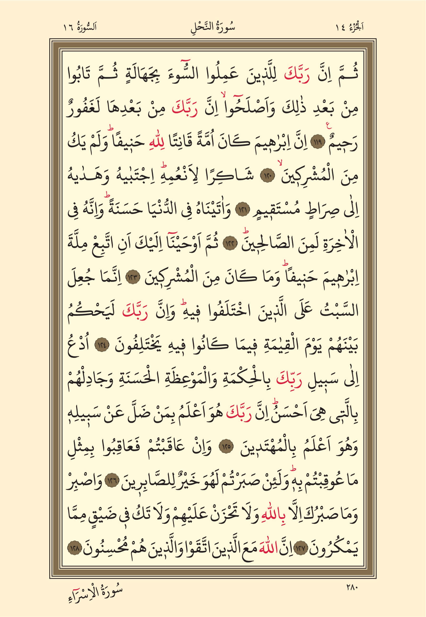 Nahl Suresi – 280. Sayfa, – 14. Cüz - 4. Hizb