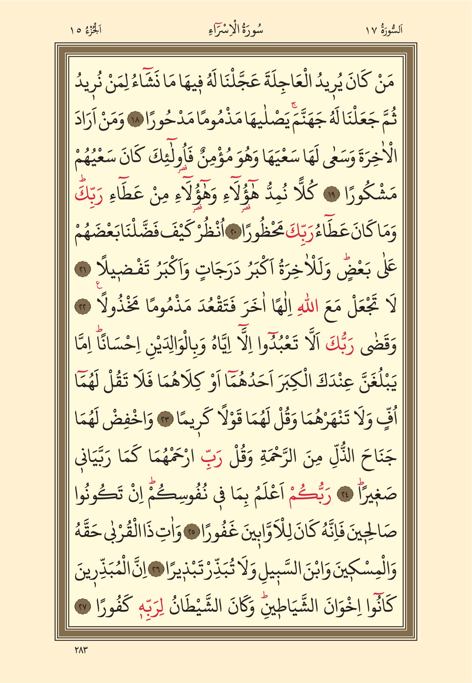 İsra Suresi – 283. Sayfa, – 15. Cüz - 1. Hizb