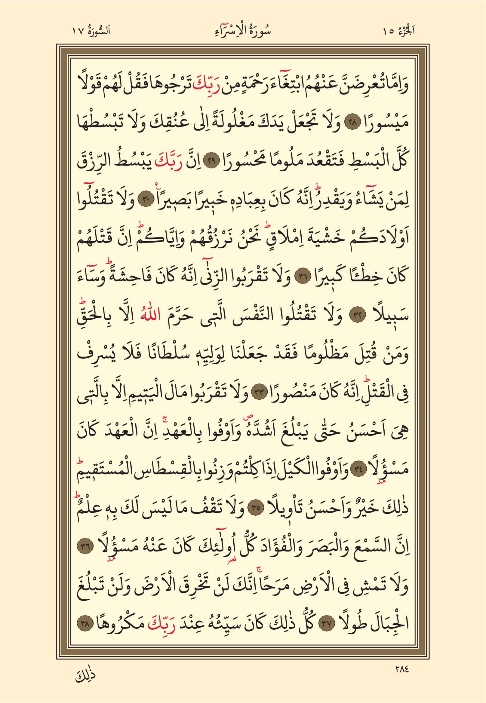 İsra Suresi – 284. Sayfa, – 15. Cüz - 1. Hizb