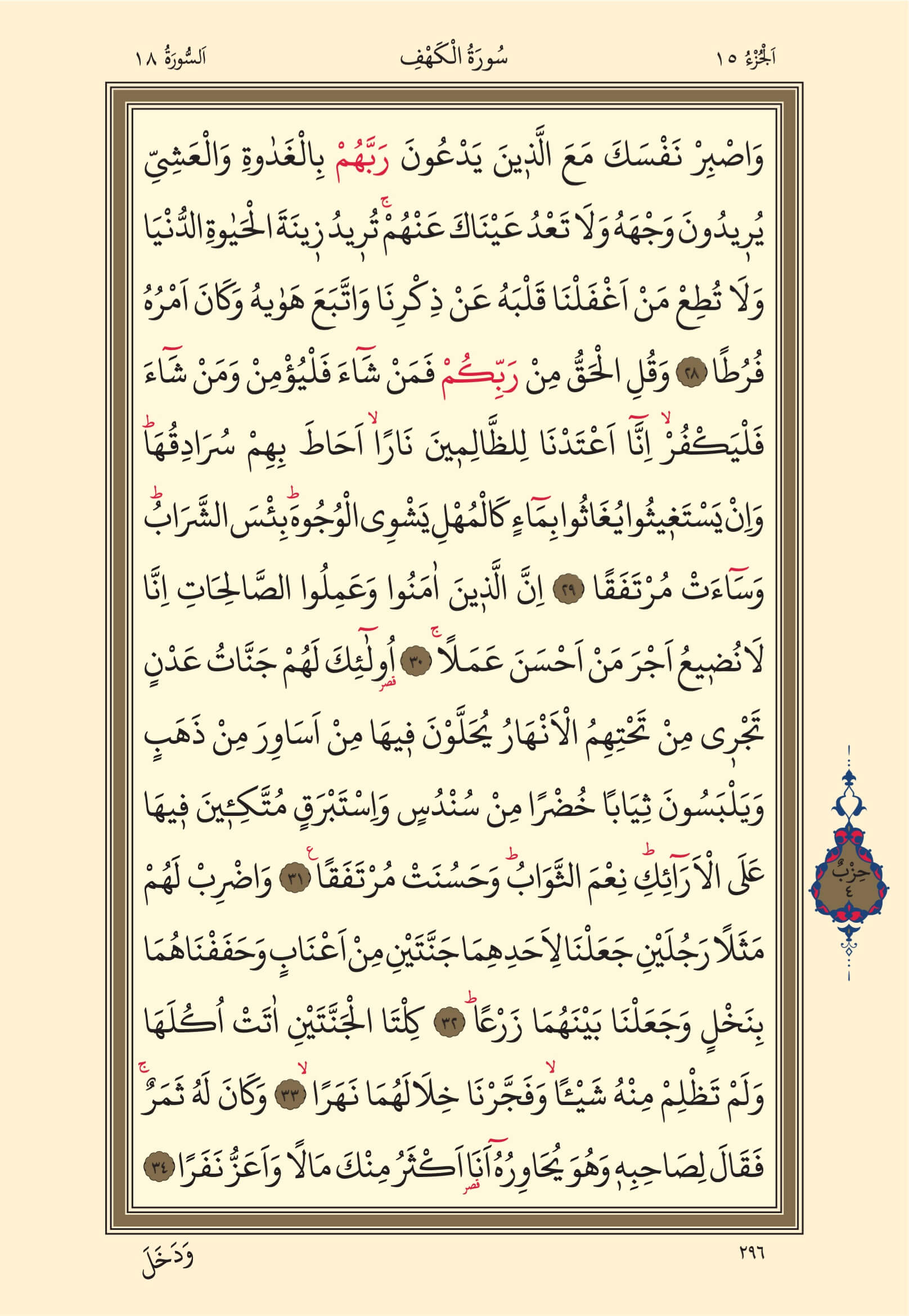 Kehf Suresi – 296. Sayfa, – 15. Cüz - 4. Hizb