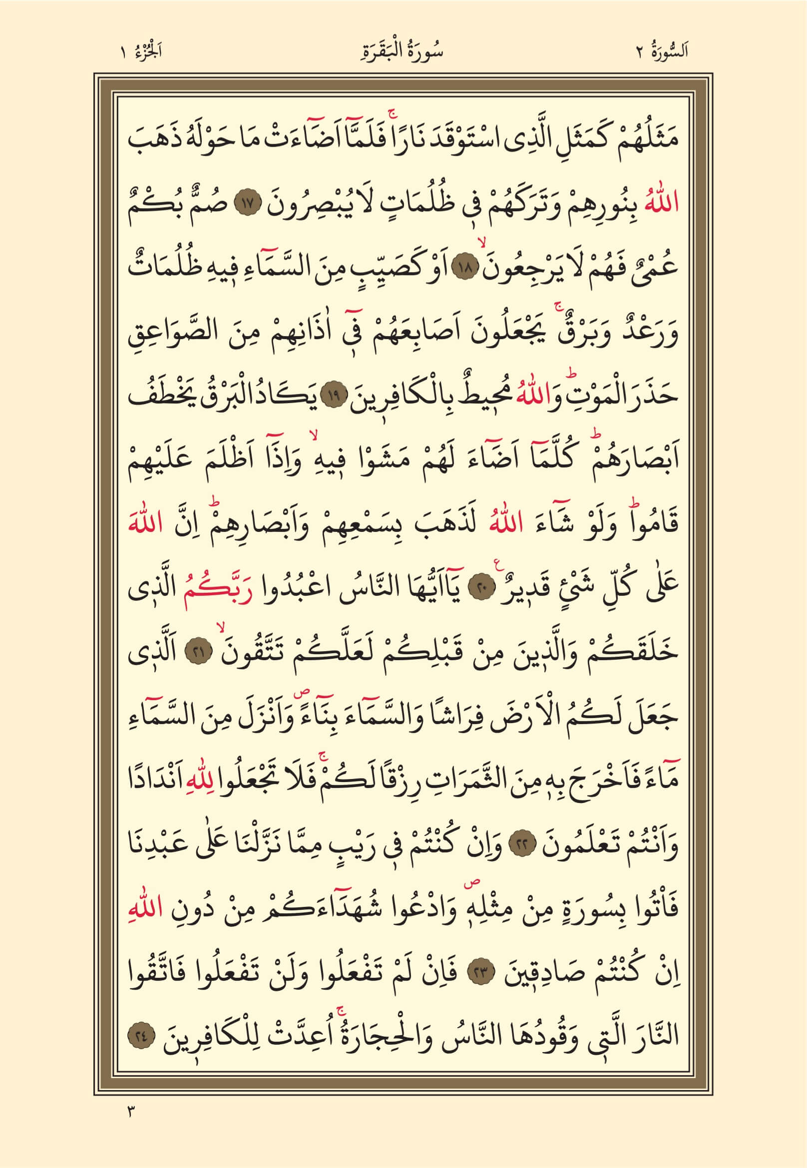 Bakara Suresi – 3. Sayfa, – 1. Cüz - 1. Hizb