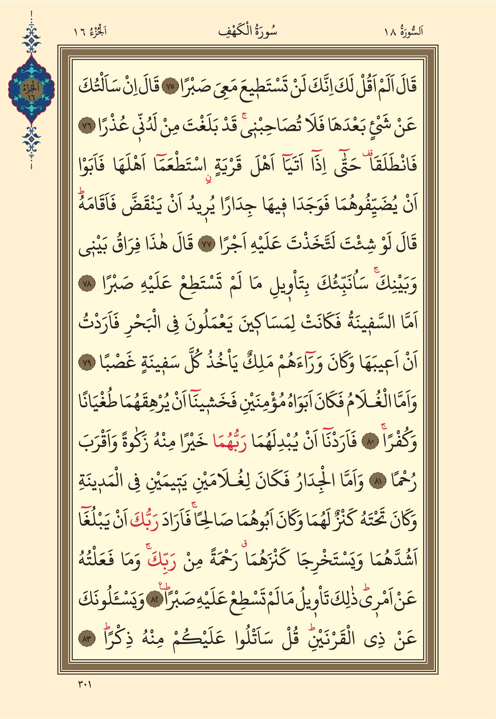 Kehf Suresi – 301. Sayfa, – 16. Cüz - 1. Hizb