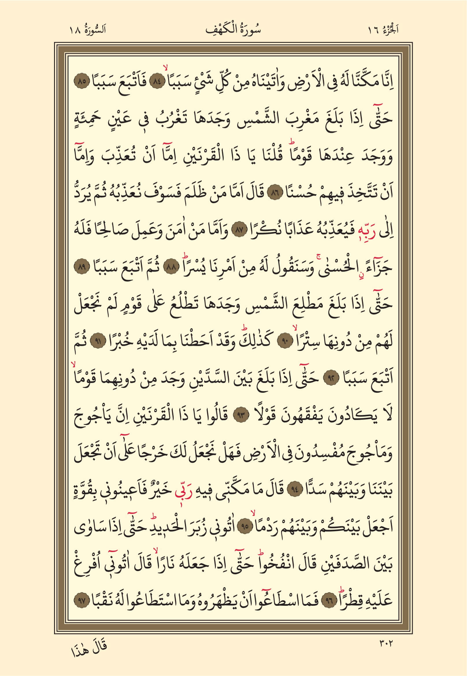 Kehf Suresi – 302. Sayfa, – 16. Cüz - 1. Hizb