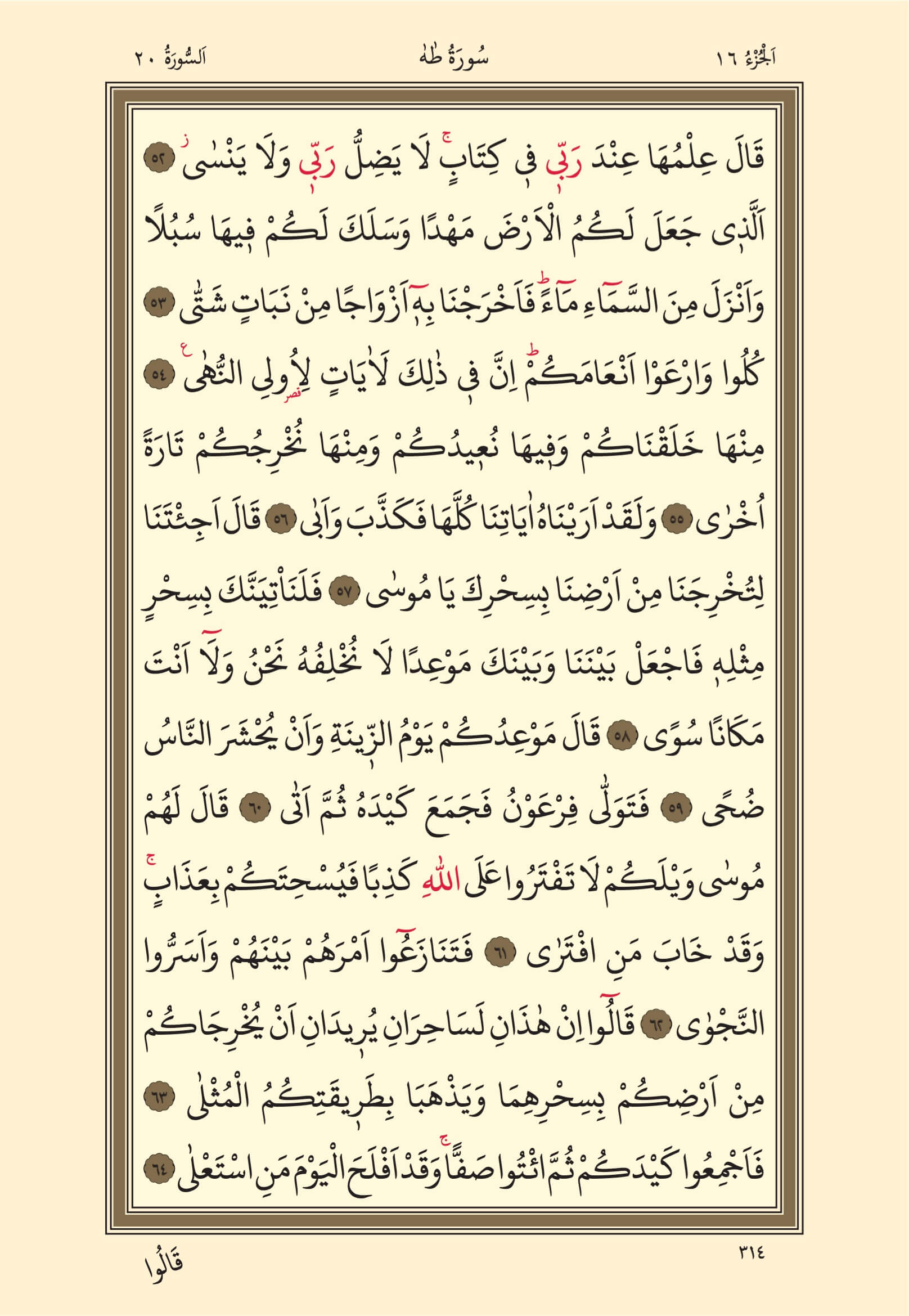 Taha Suresi – 314. Sayfa, – 16. Cüz - 3. Hizb