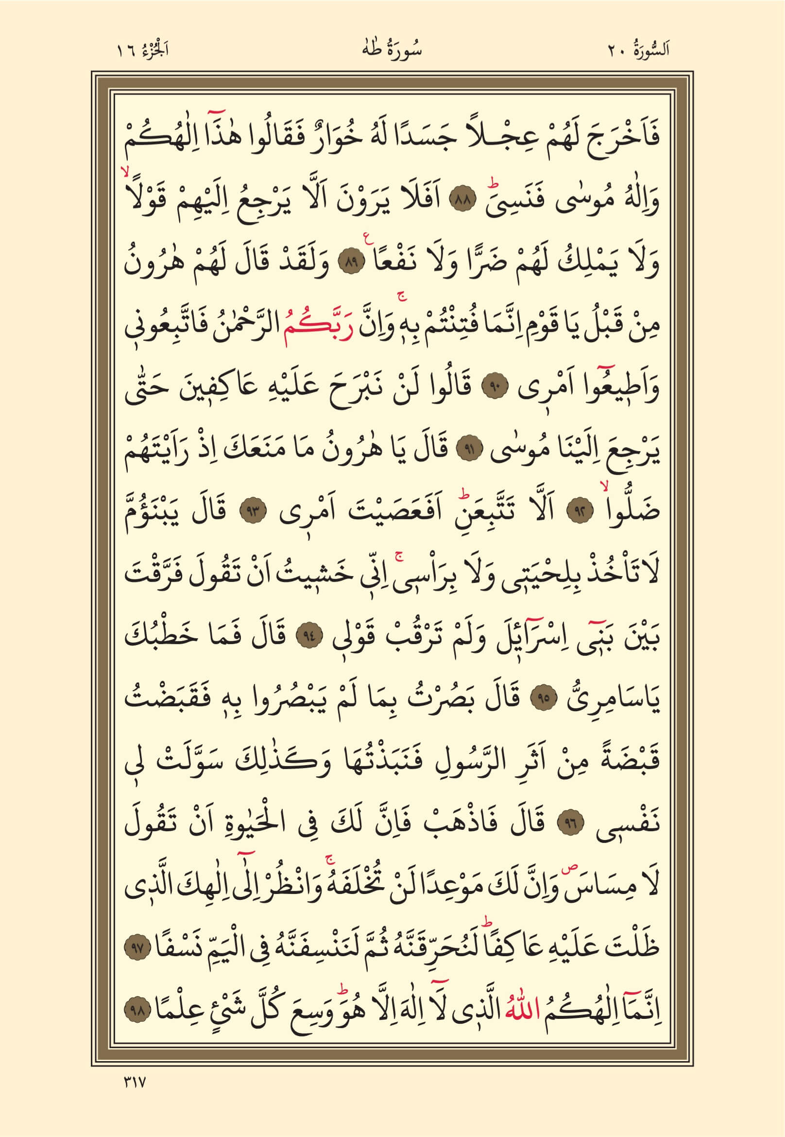 Taha Suresi – 317. Sayfa, – 16. Cüz - 4. Hizb