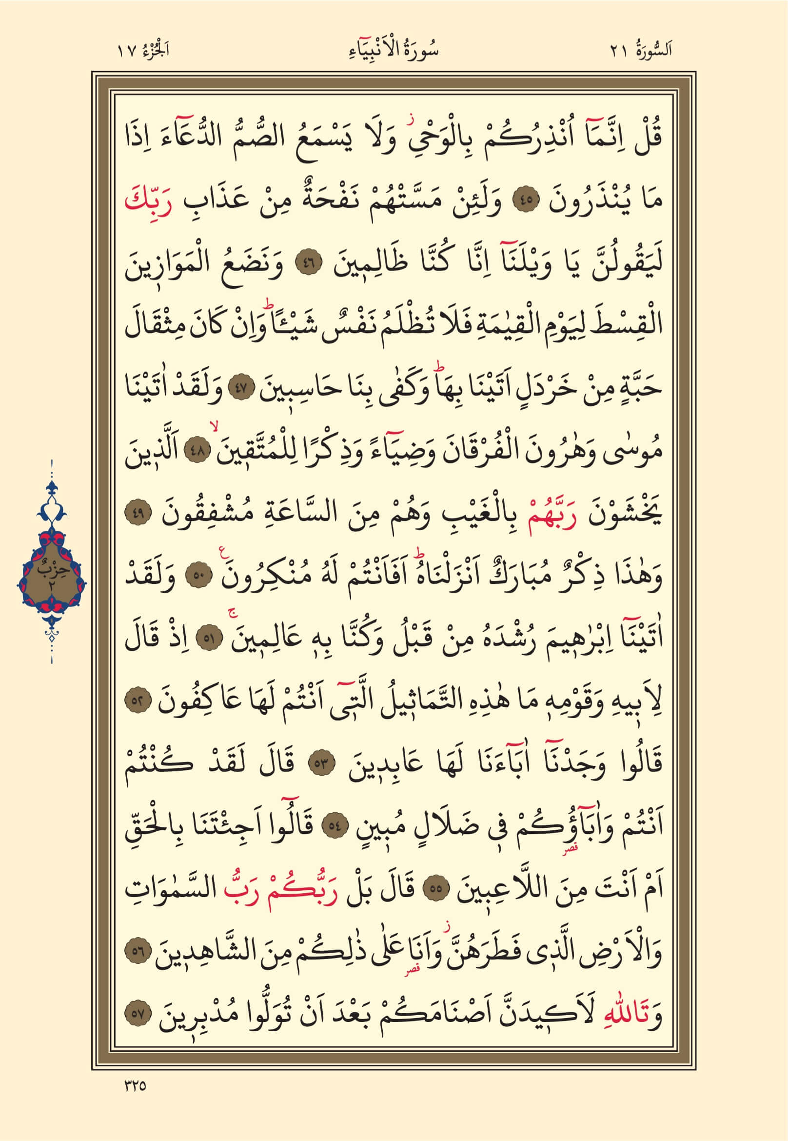 Enbiya Suresi – 325. Sayfa, – 17. Cüz - 2. Hizb