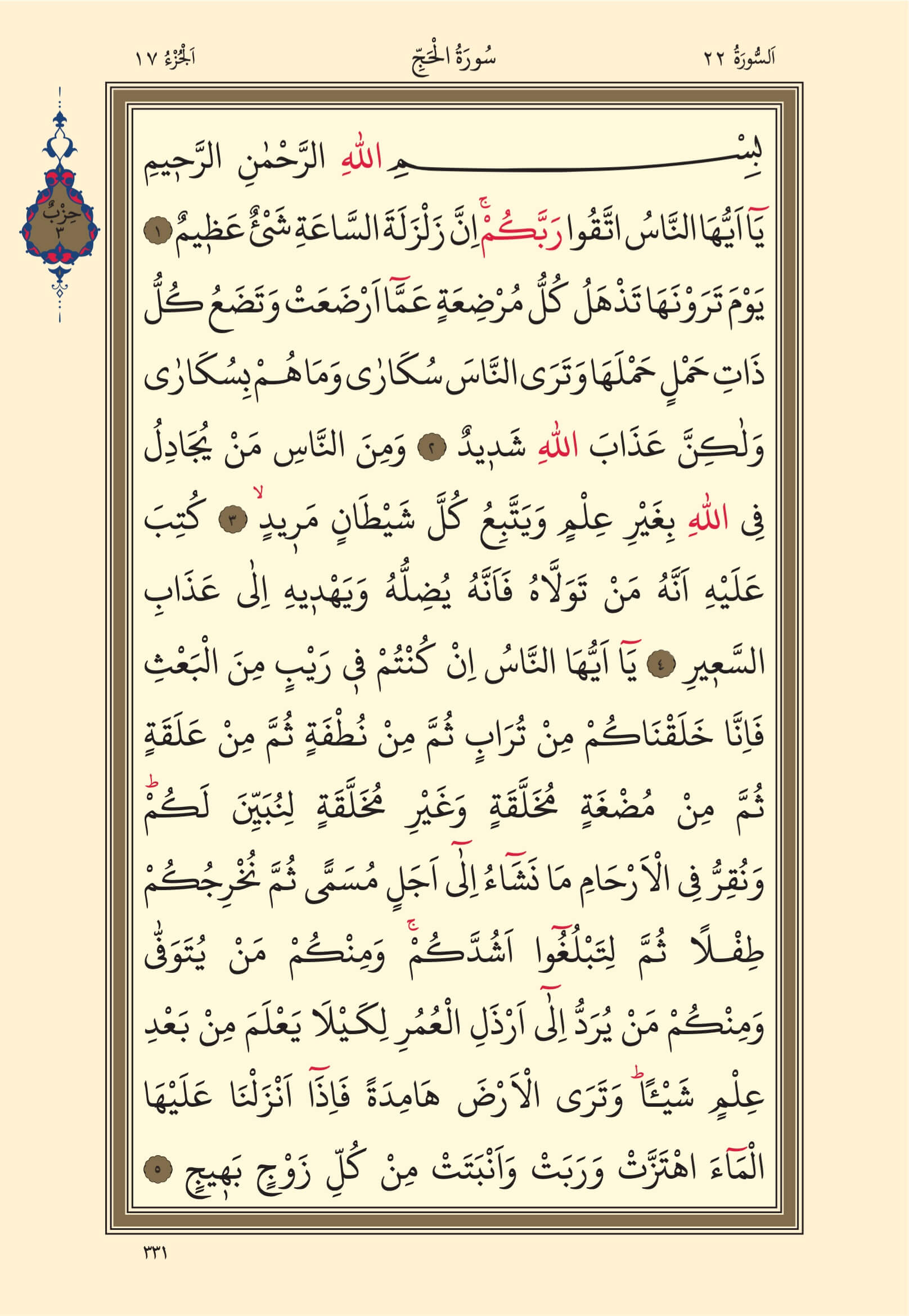 Hacc Suresi – 331. Sayfa, – 17. Cüz - 3. Hizb