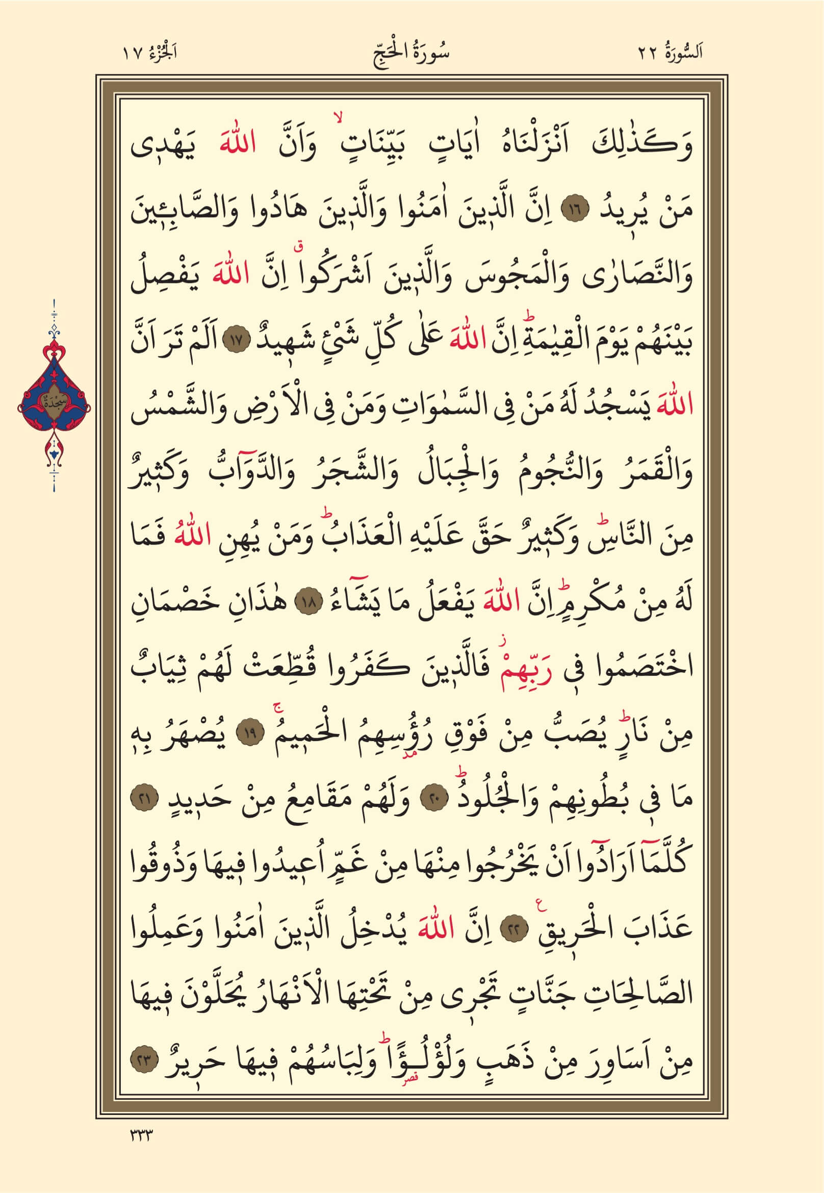 Hacc Suresi – 333. Sayfa, – 17. Cüz - 3. Hizb