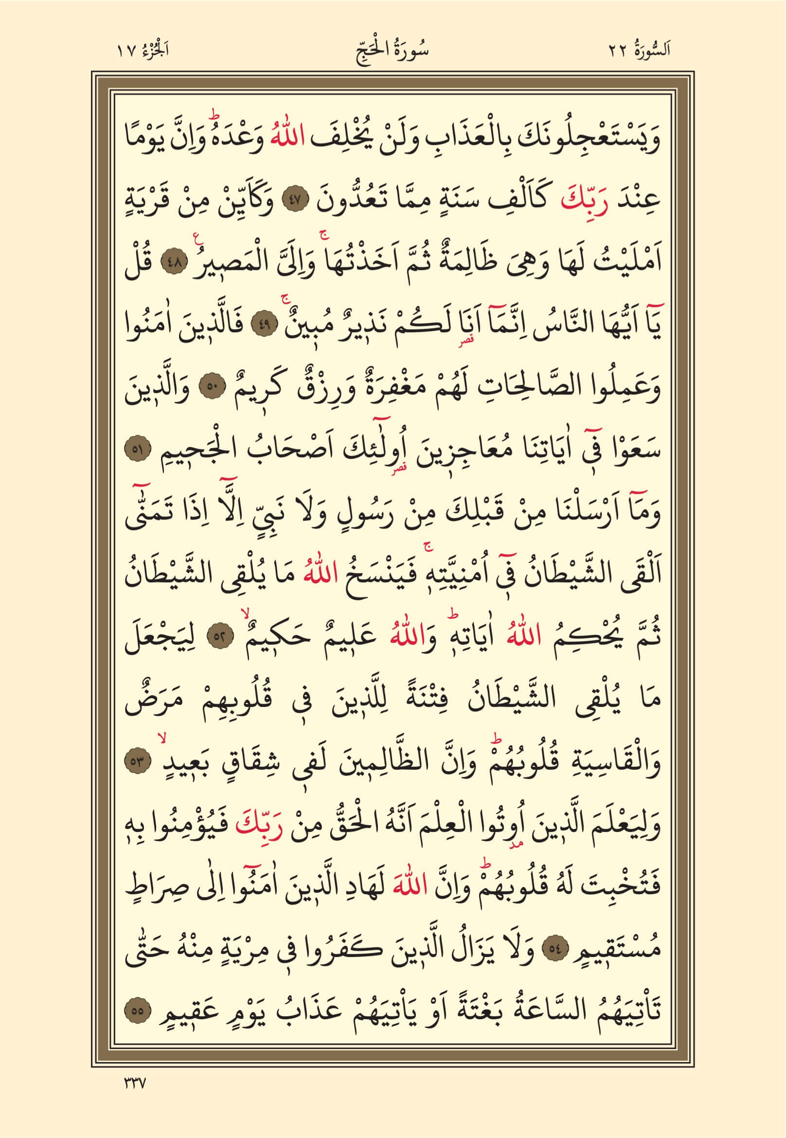 Hacc Suresi – 337. Sayfa, – 17. Cüz - 4. Hizb