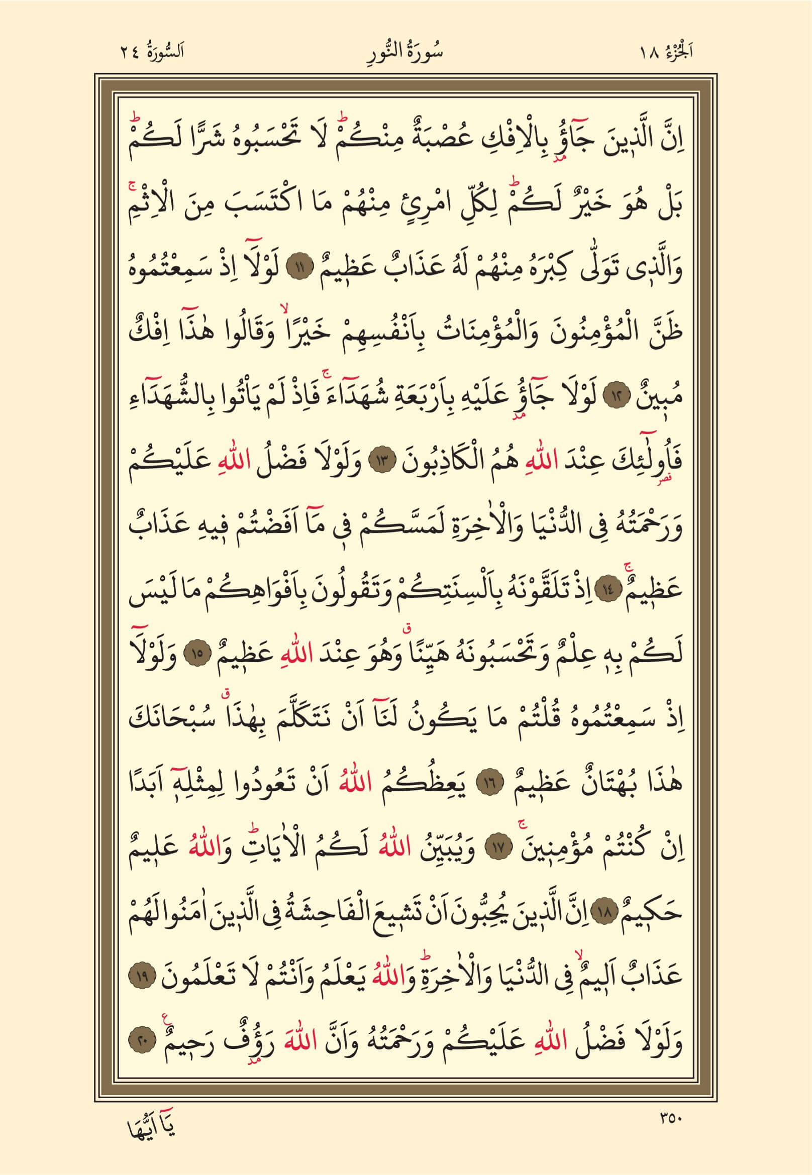 Nur Suresi – 350. Sayfa, – 18. Cüz - 3. Hizb