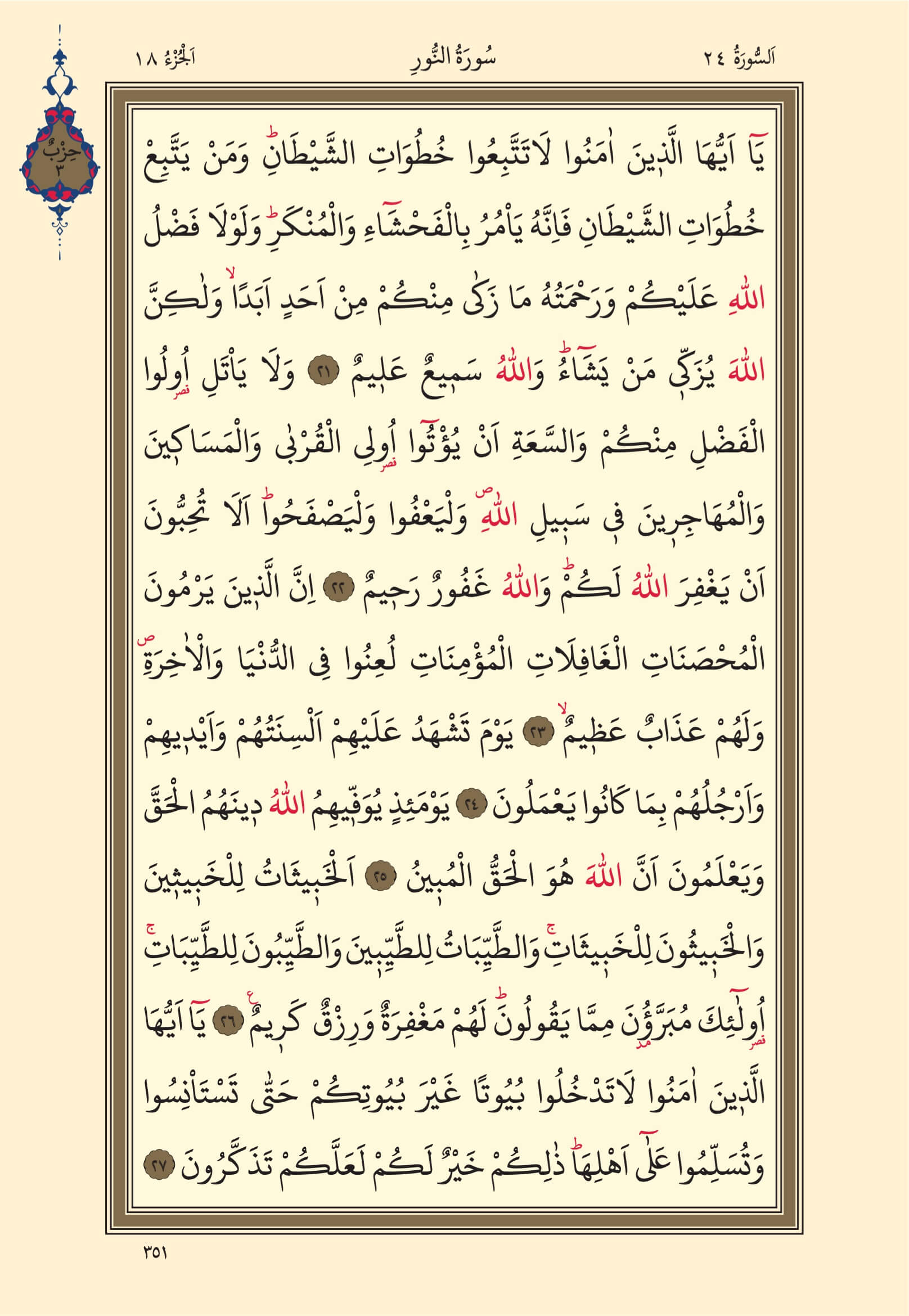 Nur Suresi – 351. Sayfa, – 18. Cüz - 3. Hizb