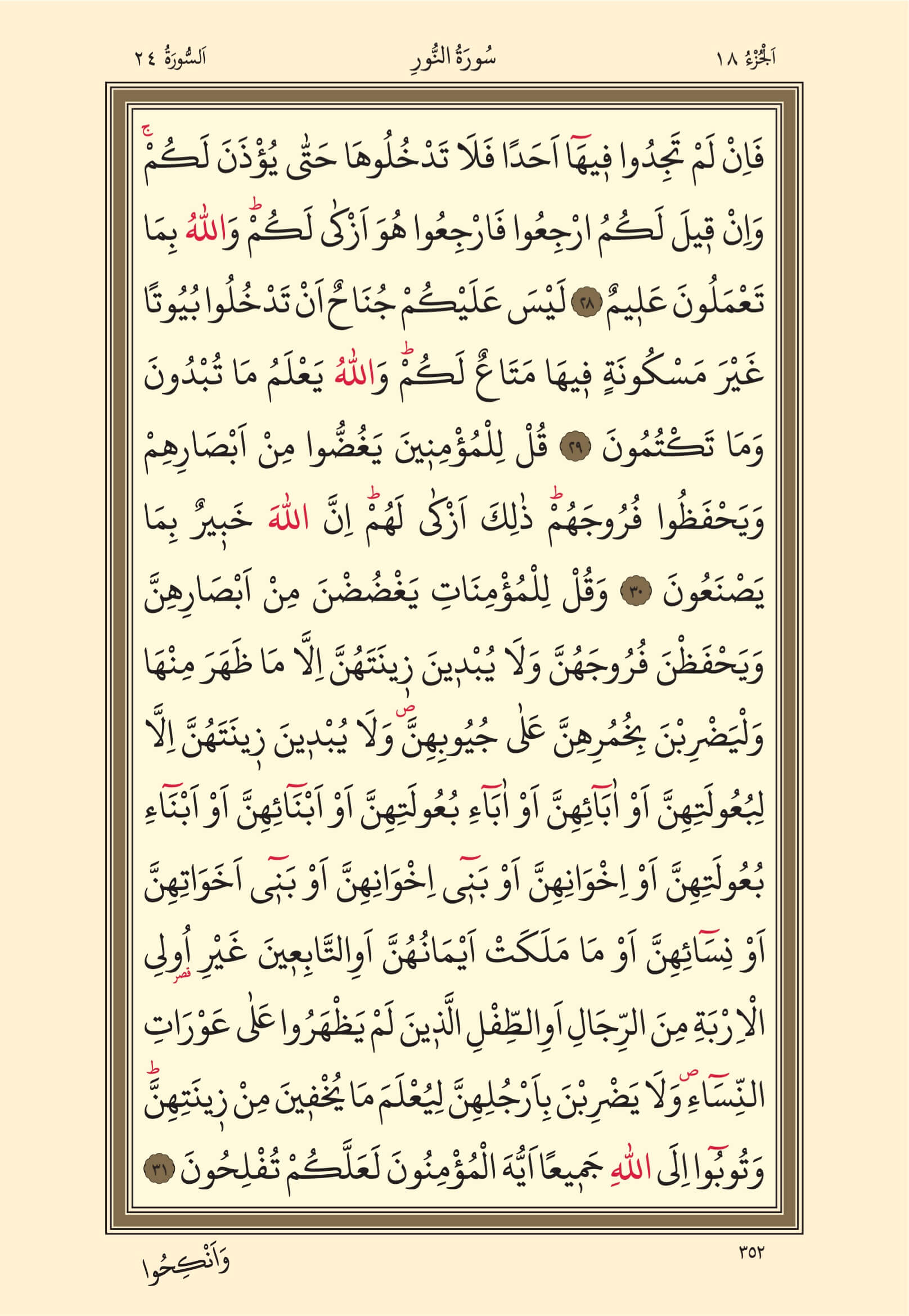 Nur Suresi – 352. Sayfa, – 18. Cüz - 3. Hizb