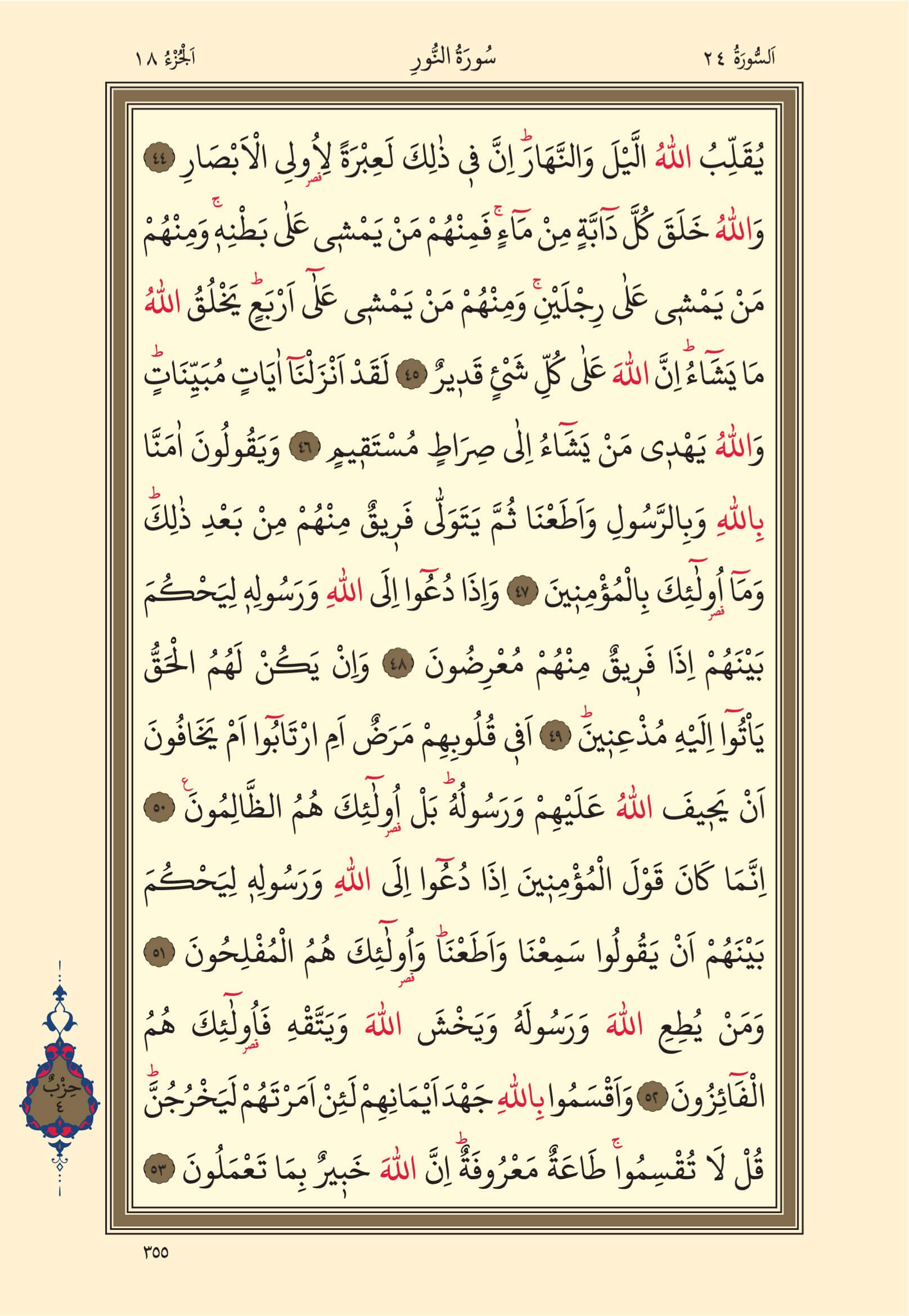 Nur Suresi – 355. Sayfa, – 18. Cüz - 4. Hizb