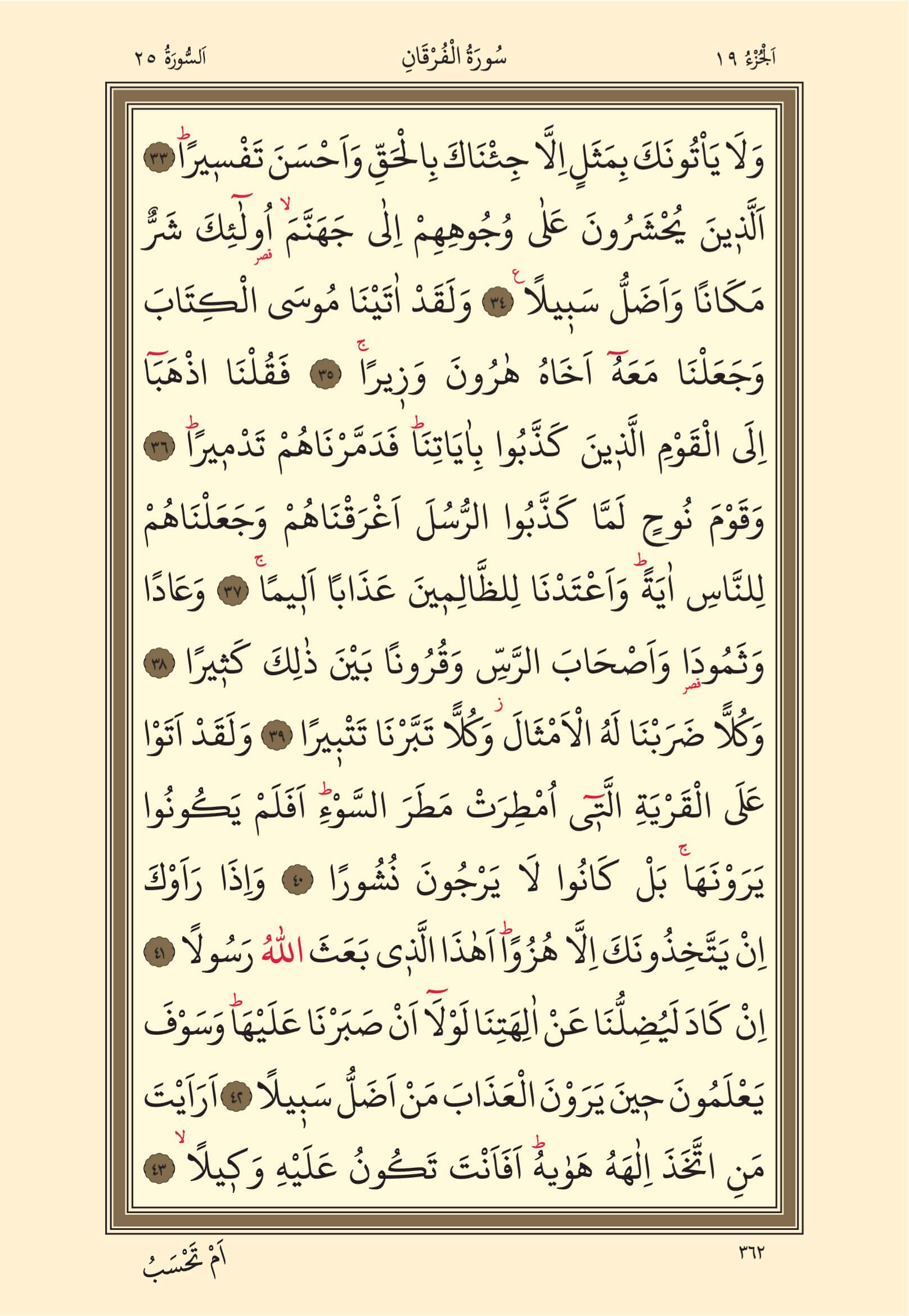 Furkan Suresi – 362. Sayfa, – 19. Cüz - 1. Hizb