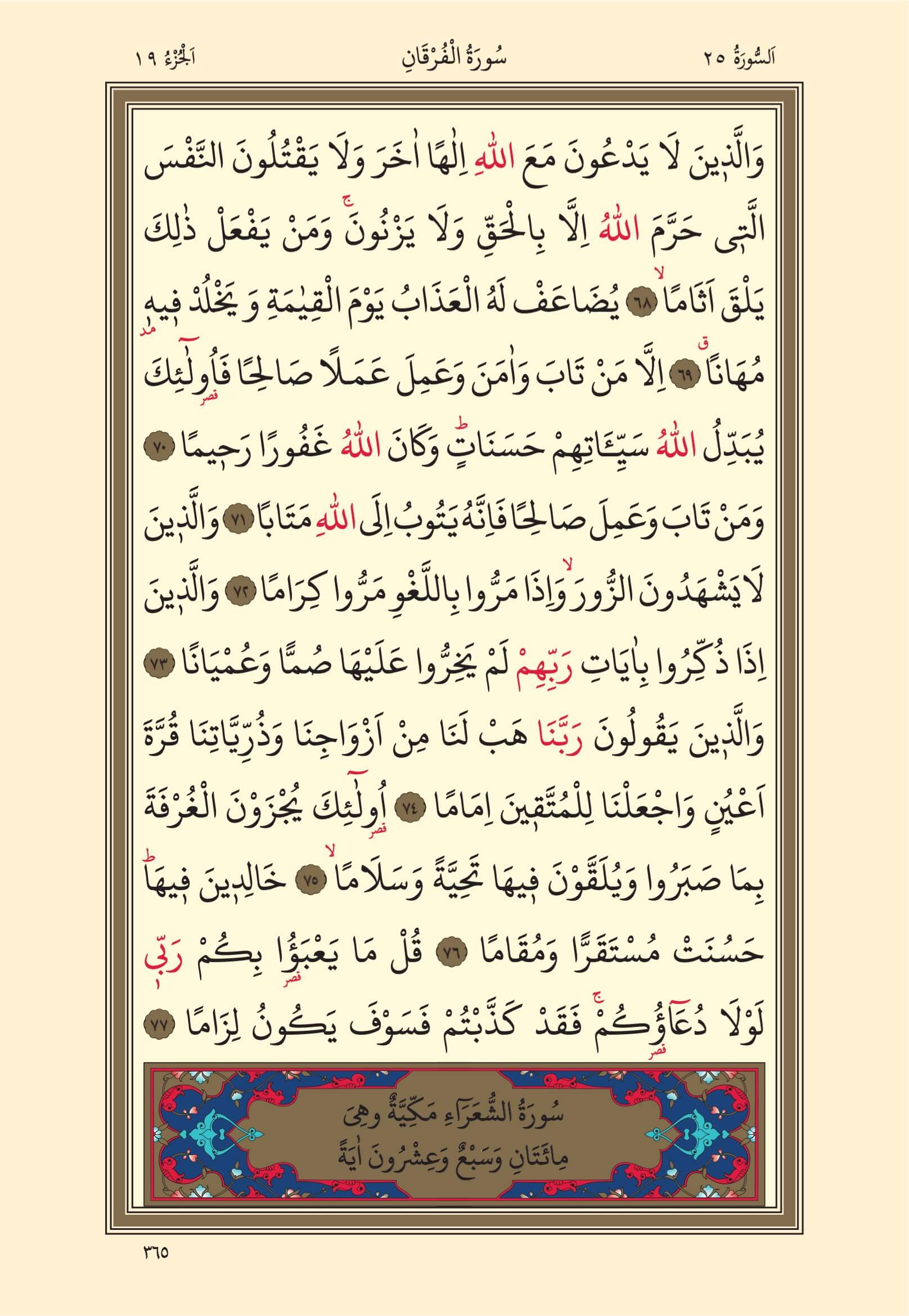 Furkan Suresi – 365. Sayfa, – 19. Cüz - 2. Hizb