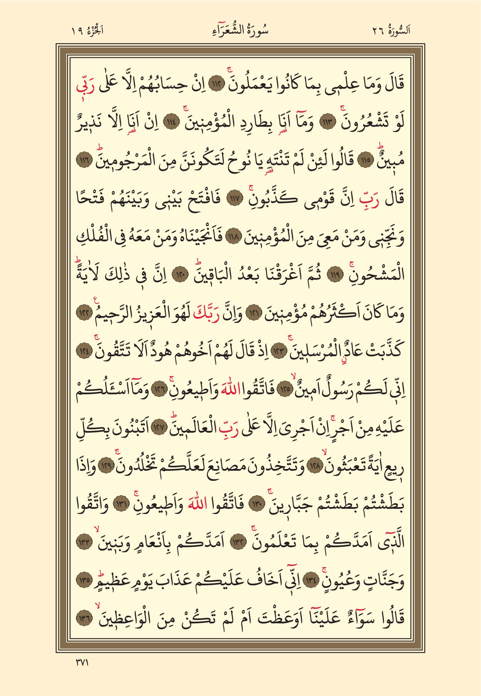 19. Cüz, 371. Sayfa, Şu`ara Suresi | Kuran-ı Kerim Oku