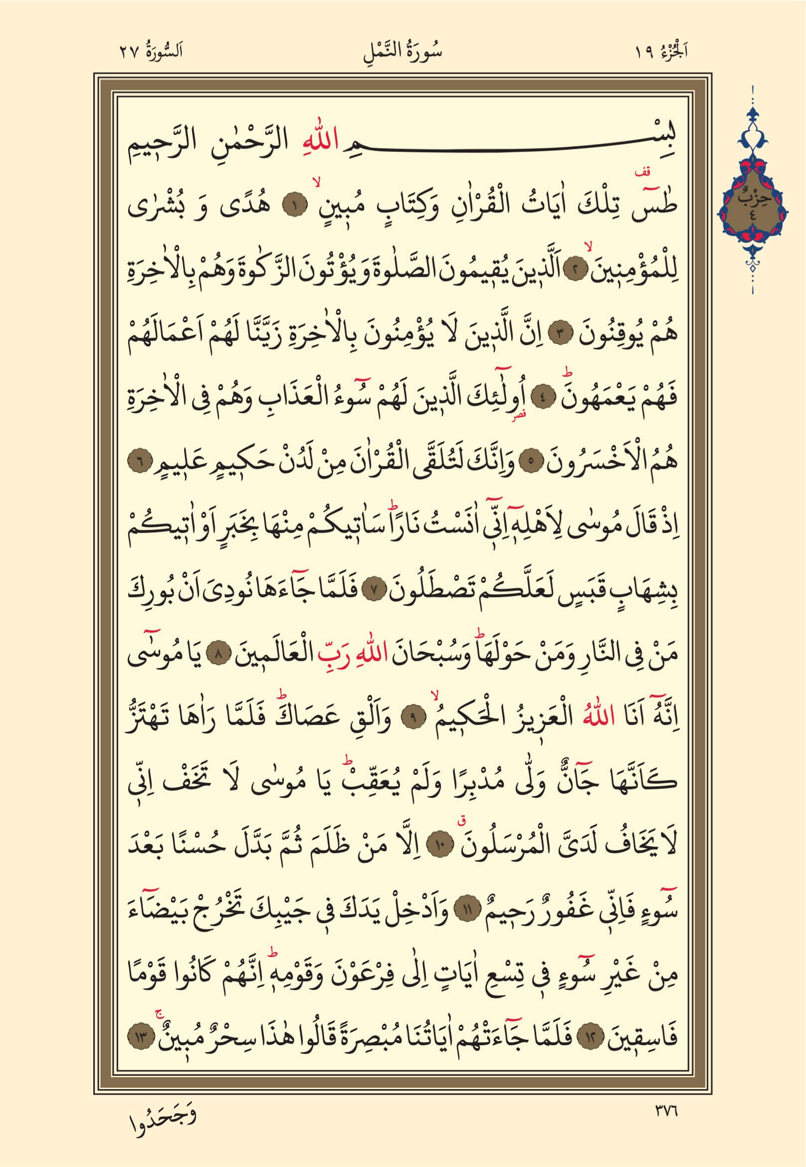 Neml Suresi – 376. Sayfa, – 19. Cüz - 4. Hizb