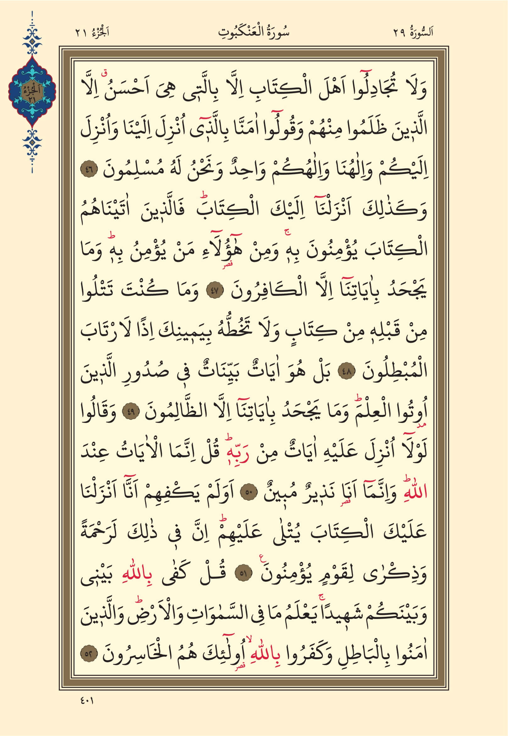 21. Cüz, 401. Sayfa, Ankebut Suresi | Kuran-ı Kerim Oku