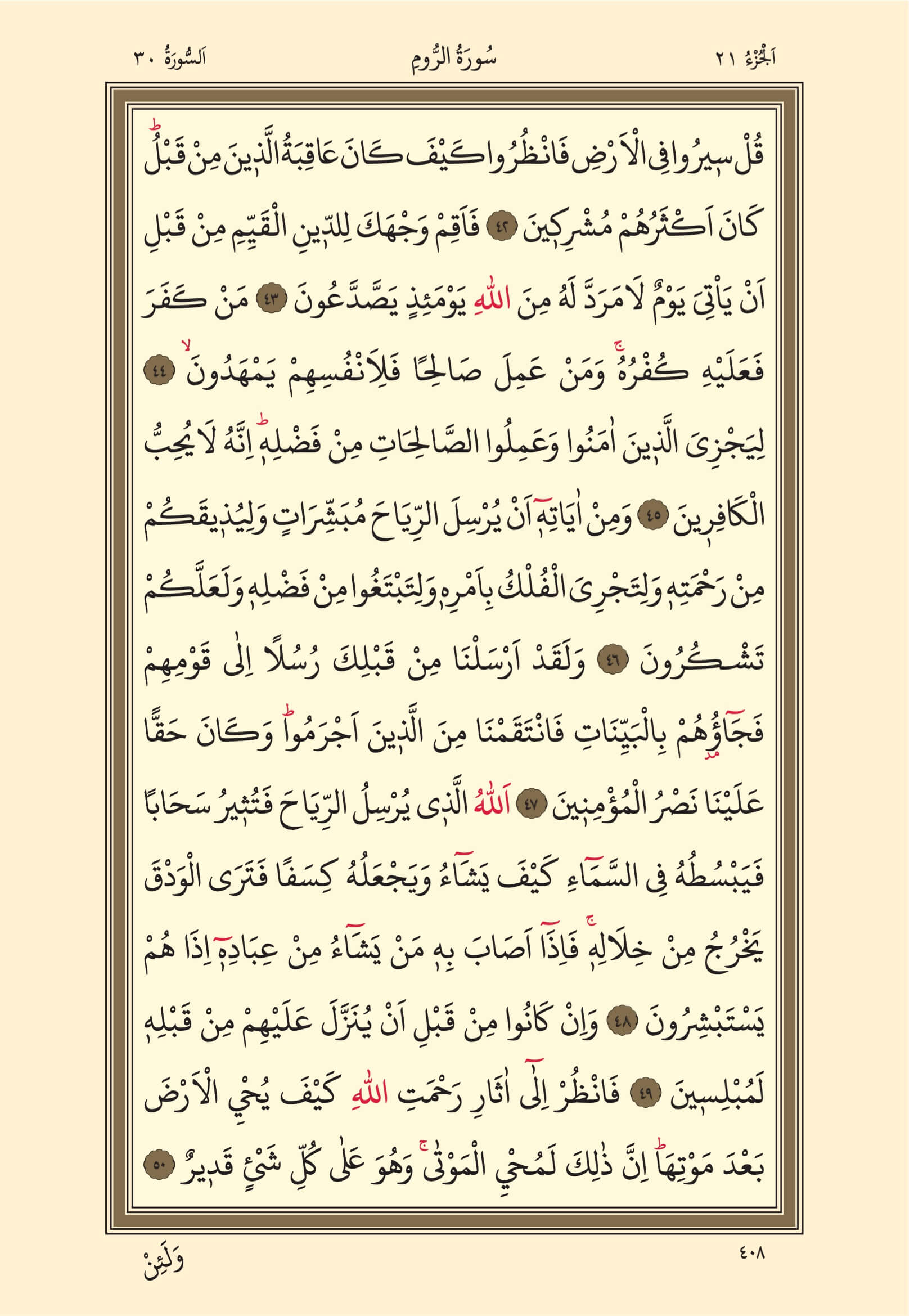 Rum Suresi – 408. Sayfa, – 21. Cüz - 2. Hizb