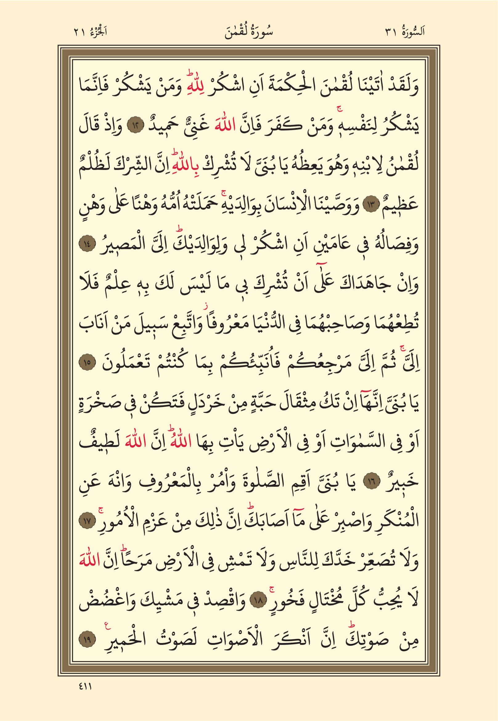 Lokman Suresi – 411. Sayfa, – 21. Cüz - 3. Hizb