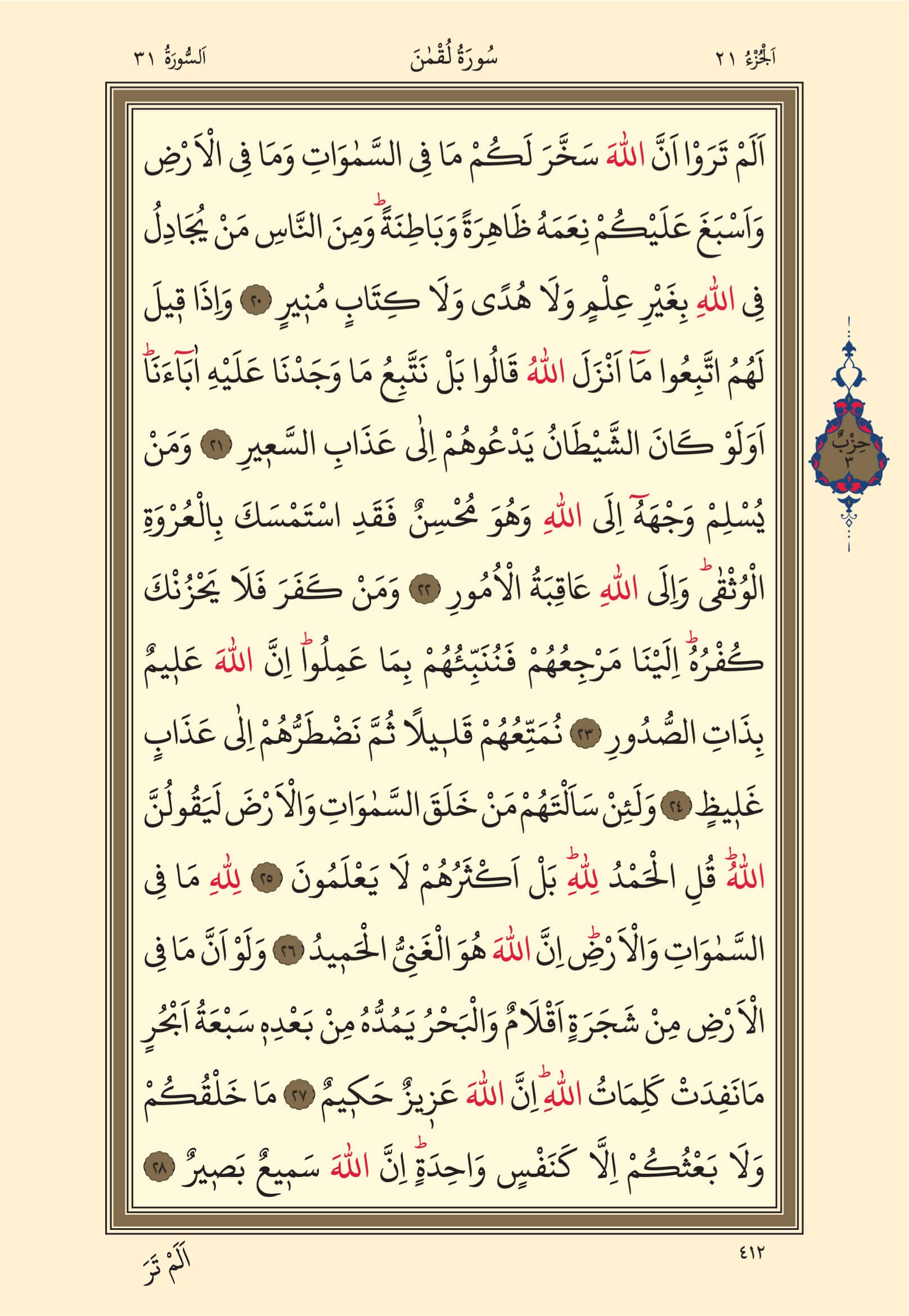 Lokman Suresi – 412. Sayfa, – 21. Cüz - 3. Hizb