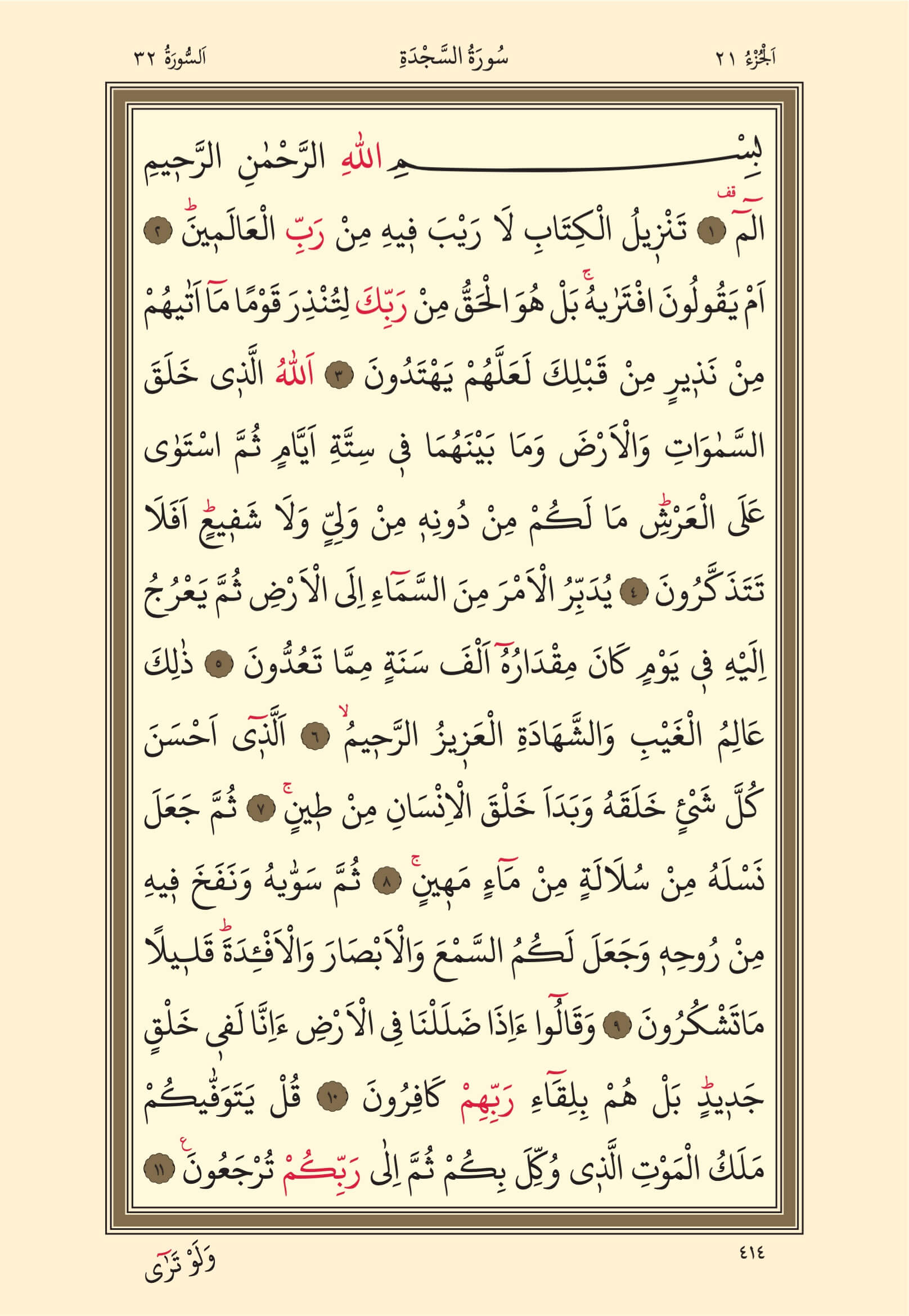 Secde Suresi – 414. Sayfa, – 21. Cüz - 3. Hizb