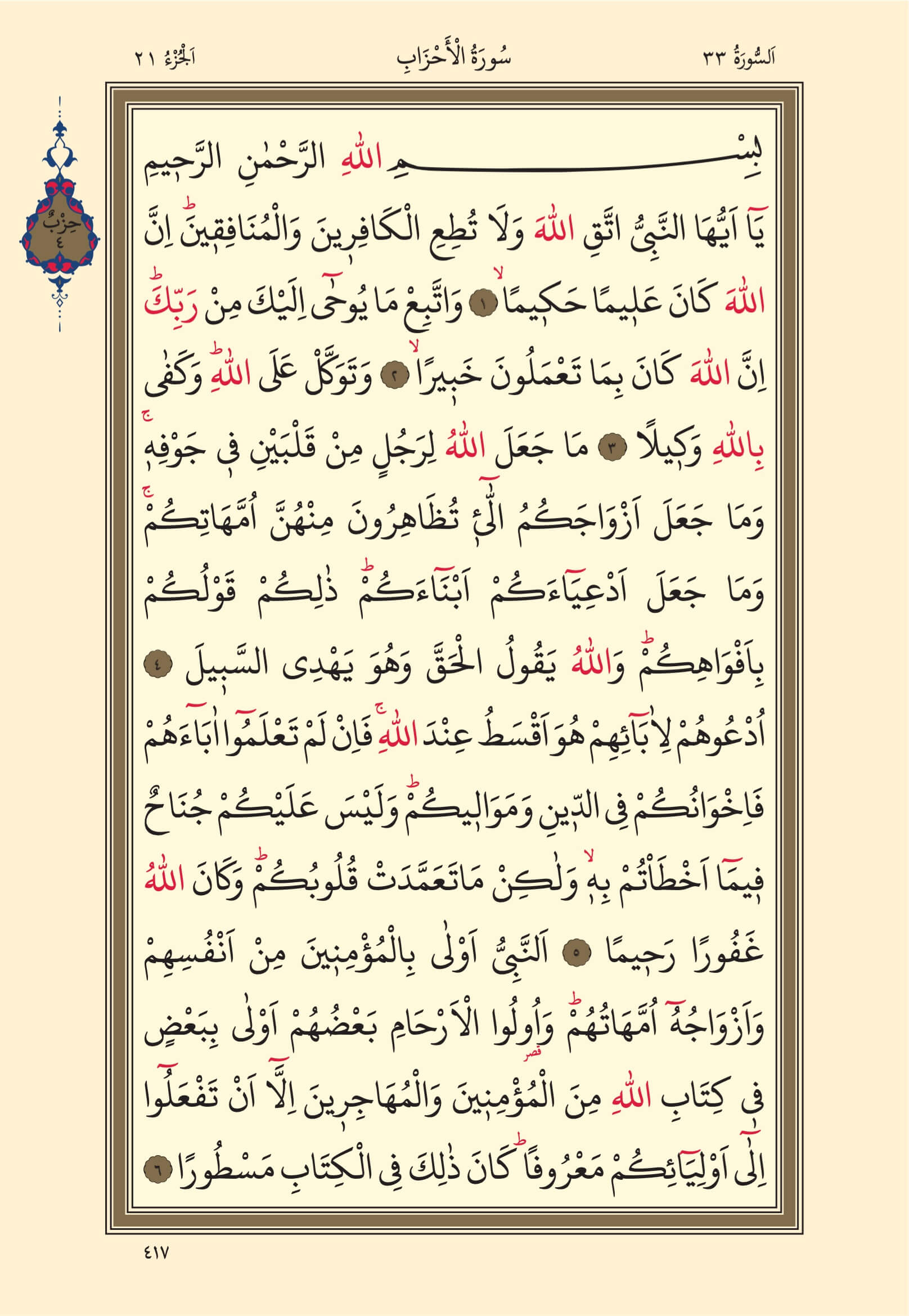 Ahzab Suresi – 417. Sayfa, – 21. Cüz - 4. Hizb
