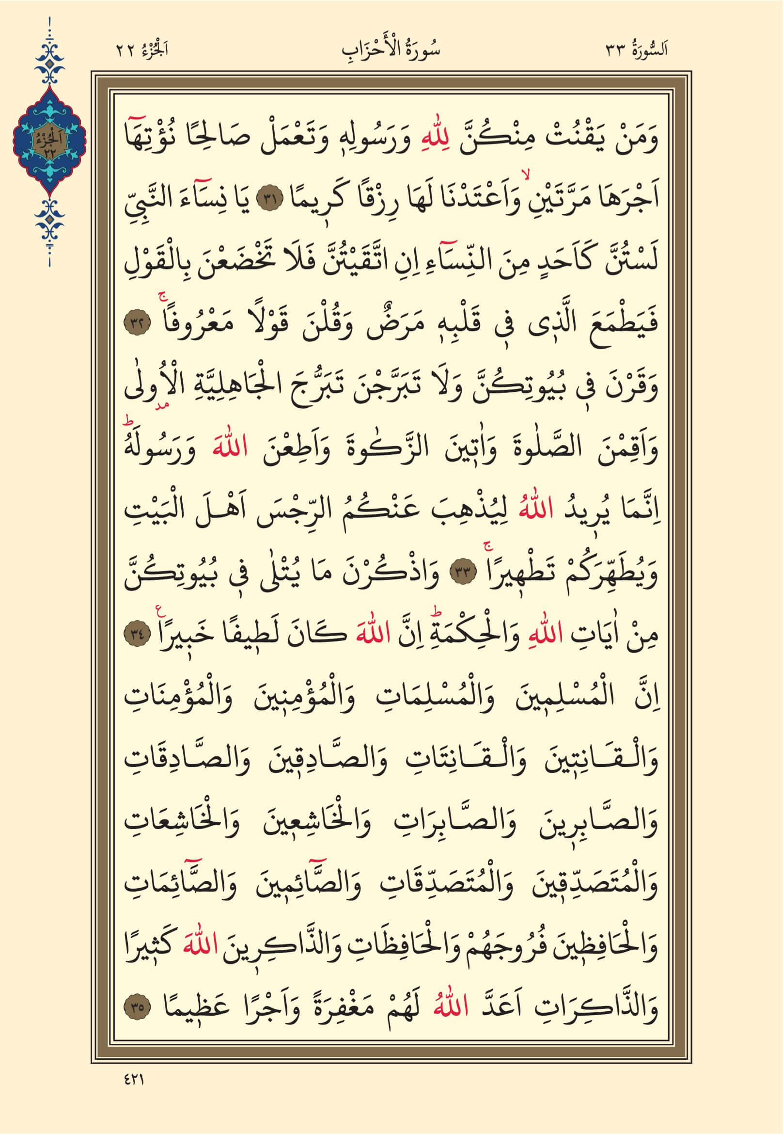 Ahzab Suresi – 421. Sayfa, – 22. Cüz - 1. Hizb