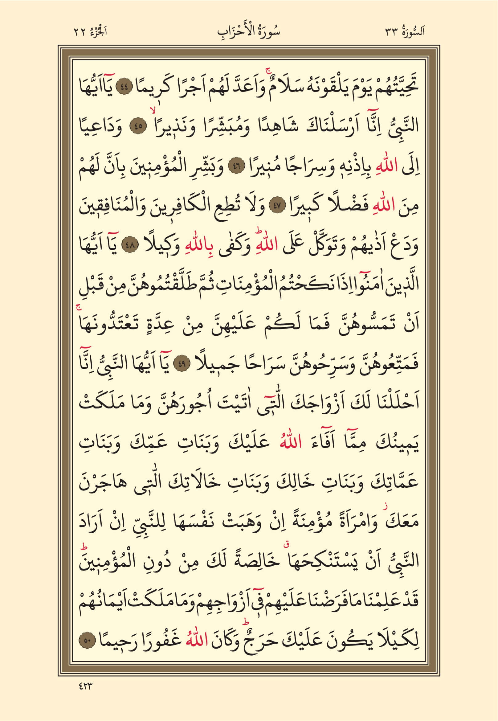 Ahzab Suresi – 423. Sayfa, – 22. Cüz - 1. Hizb