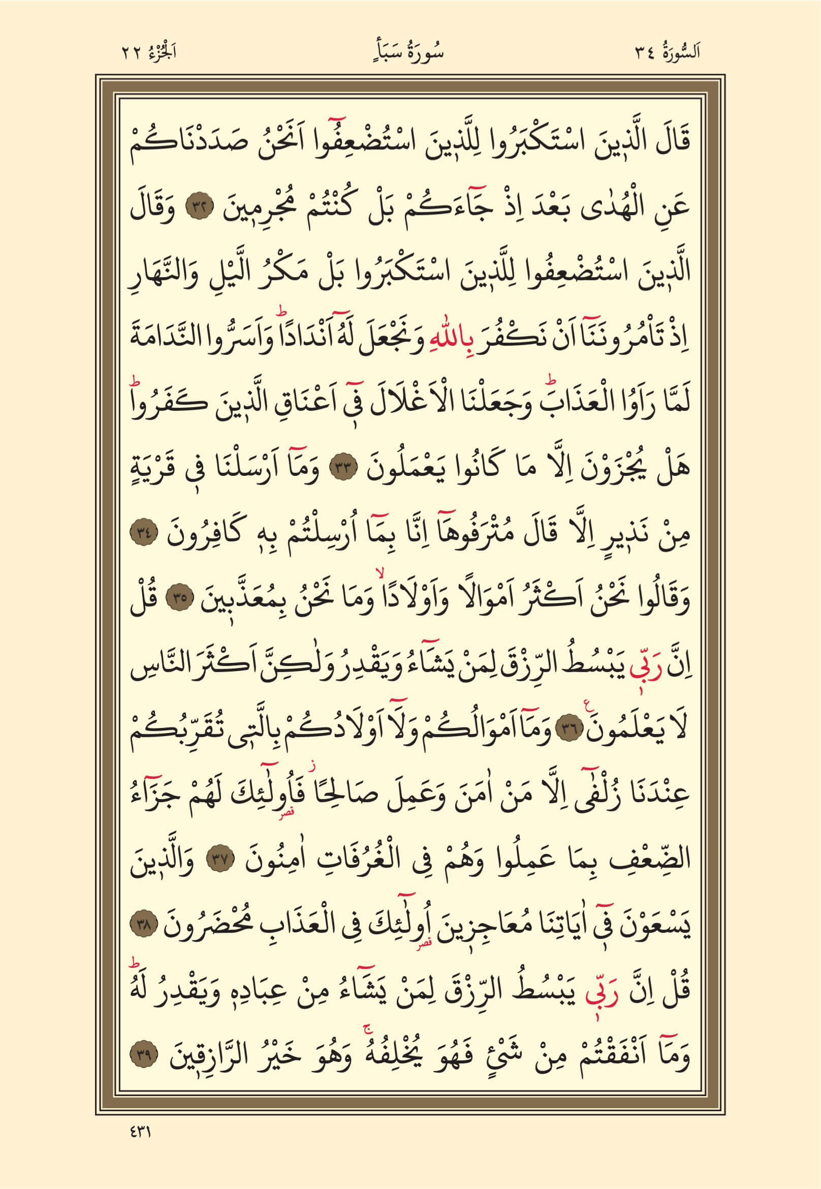 Sebe Suresi – 431. Sayfa, – 22. Cüz - 3. Hizb