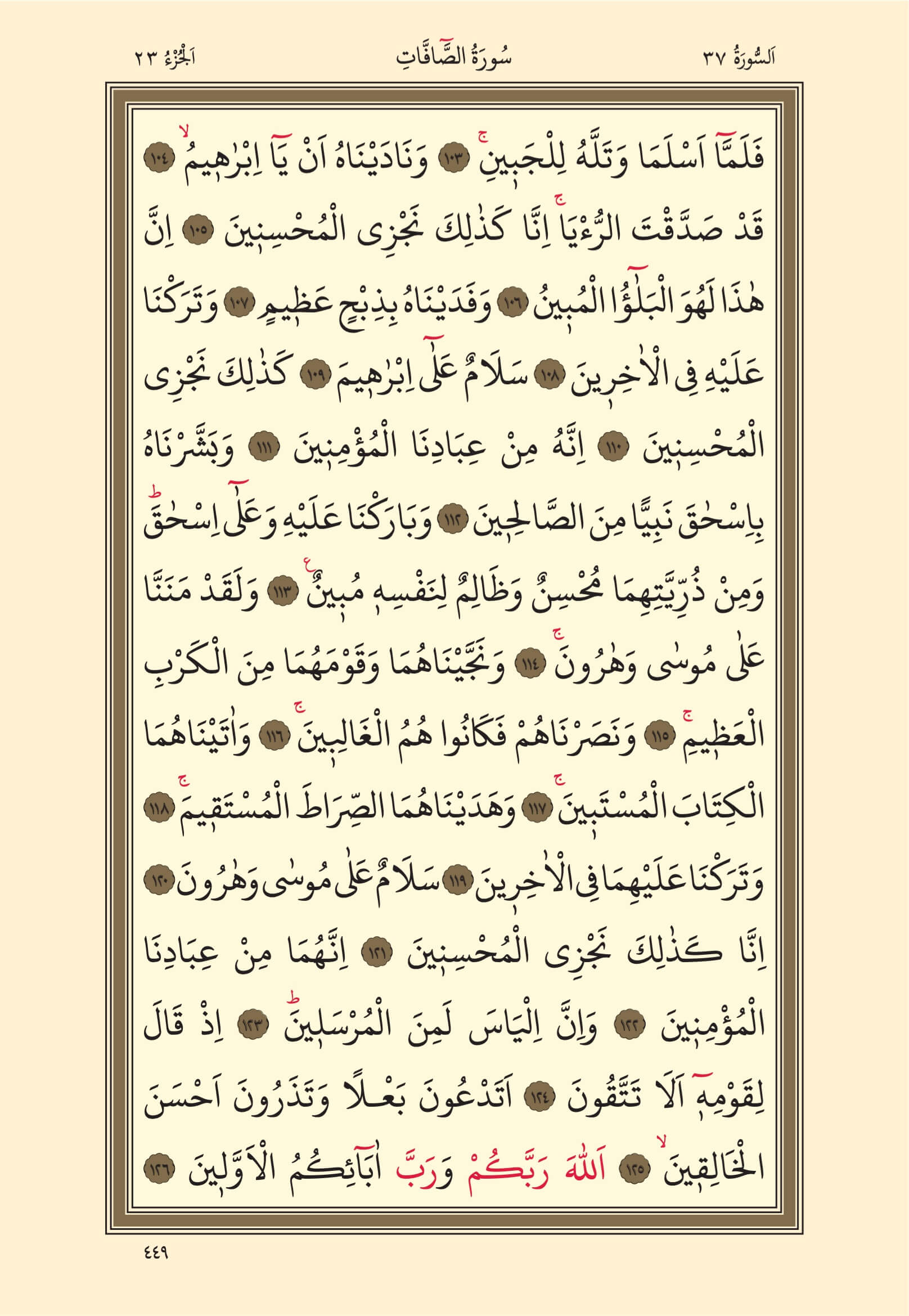Saffat Suresi – 449. Sayfa, – 23. Cüz - 2. Hizb