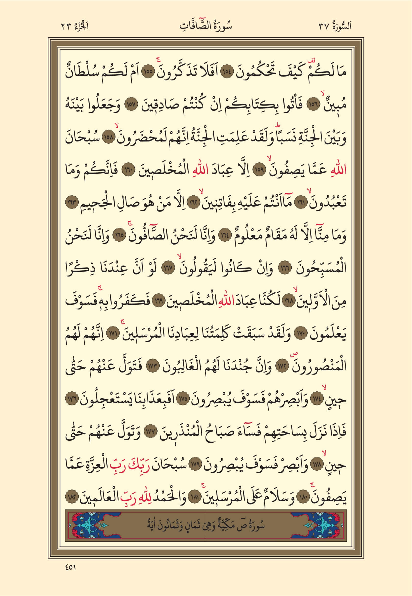 Saffat Suresi – 451. Sayfa, – 23. Cüz - 3. Hizb