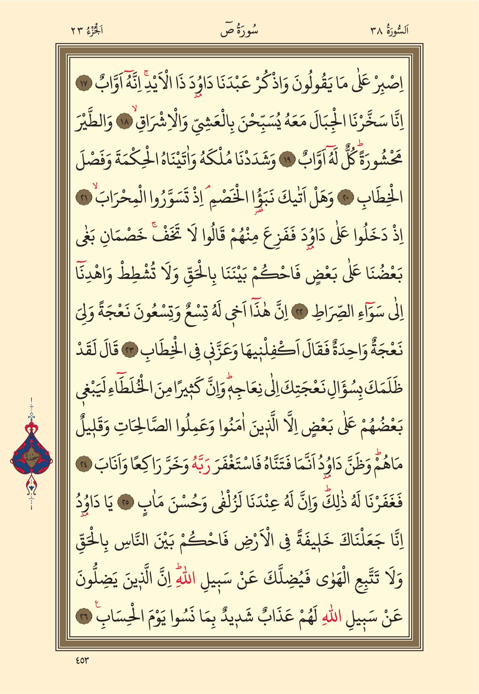 Sad Suresi – 453. Sayfa, – 23. Cüz - 3. Hizb