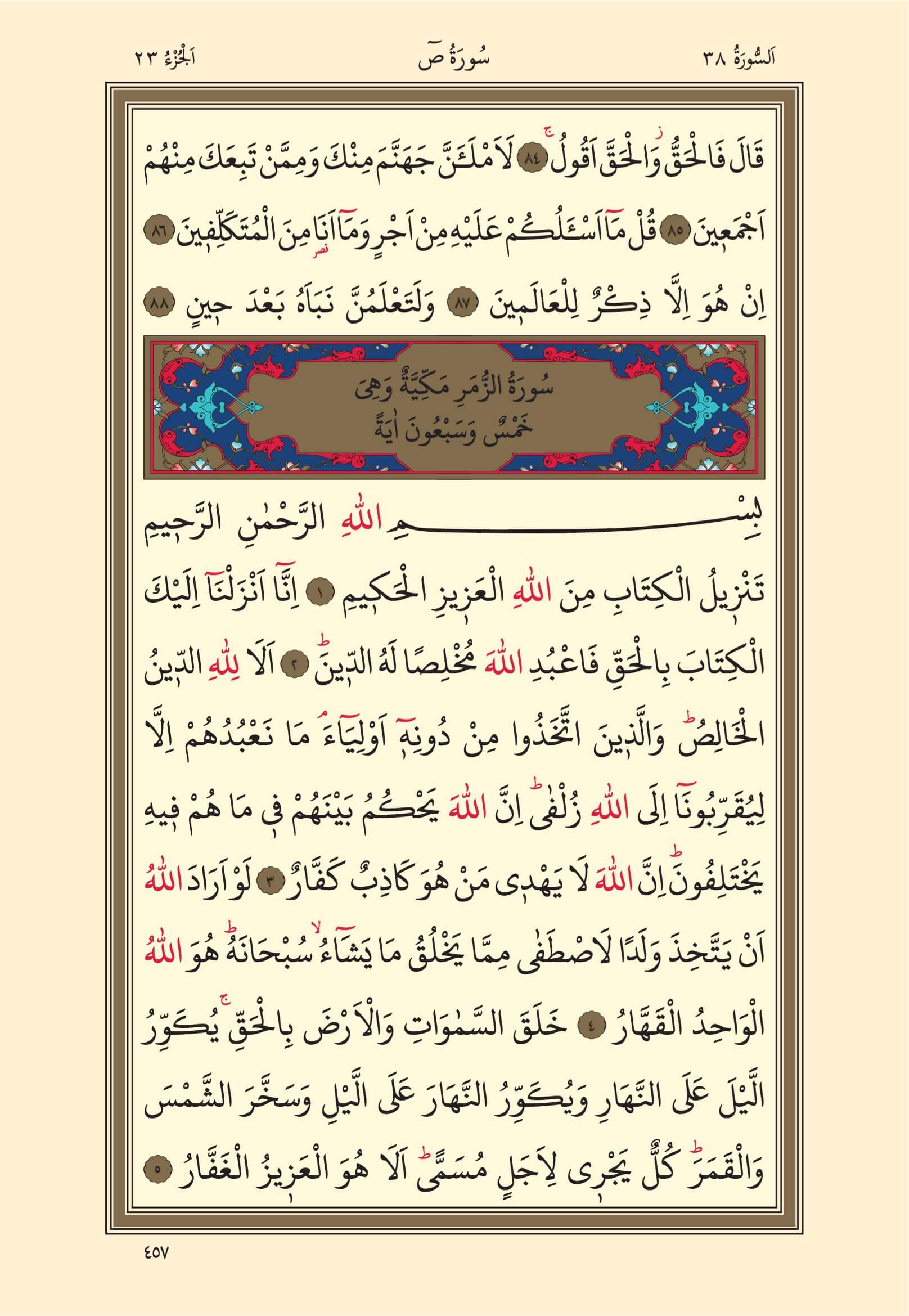 Zümer Suresi – 457. Sayfa, – 23. Cüz - 4. Hizb