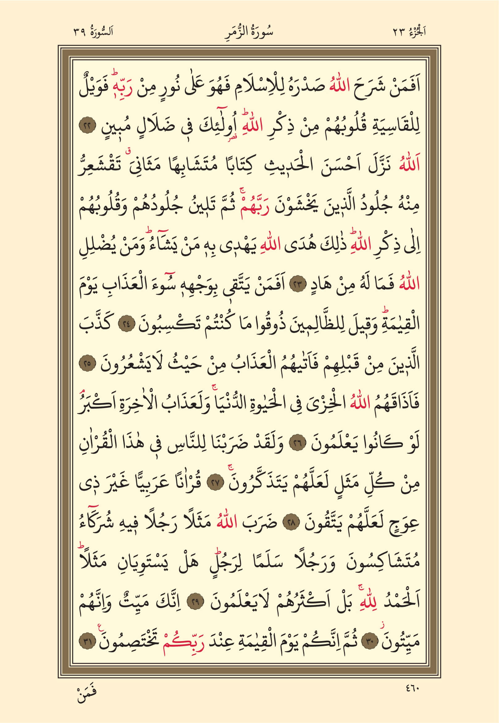 Zümer Suresi – 460. Sayfa, – 23. Cüz - 4. Hizb