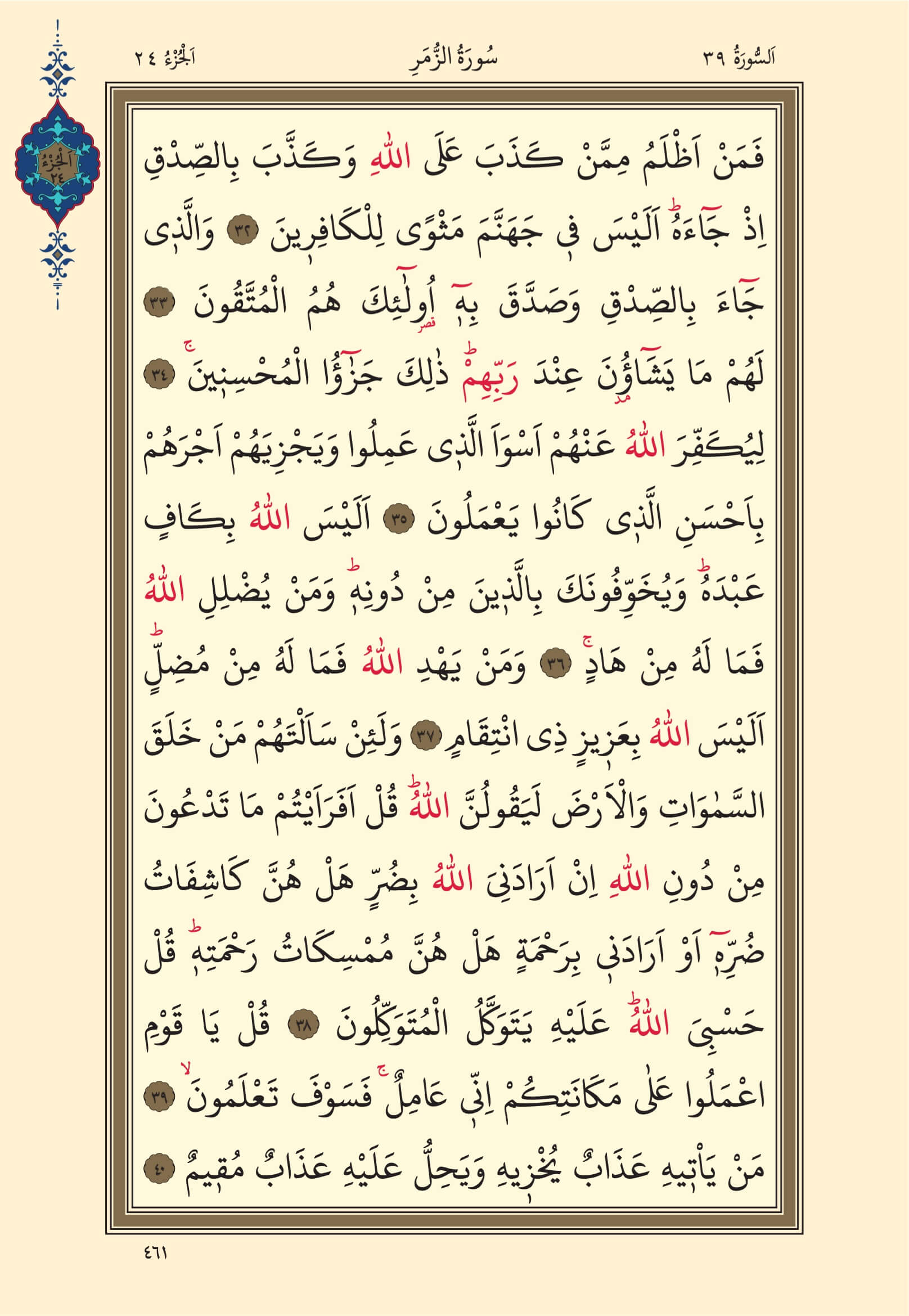 Zümer Suresi – 461. Sayfa, – 24. Cüz - 1. Hizb