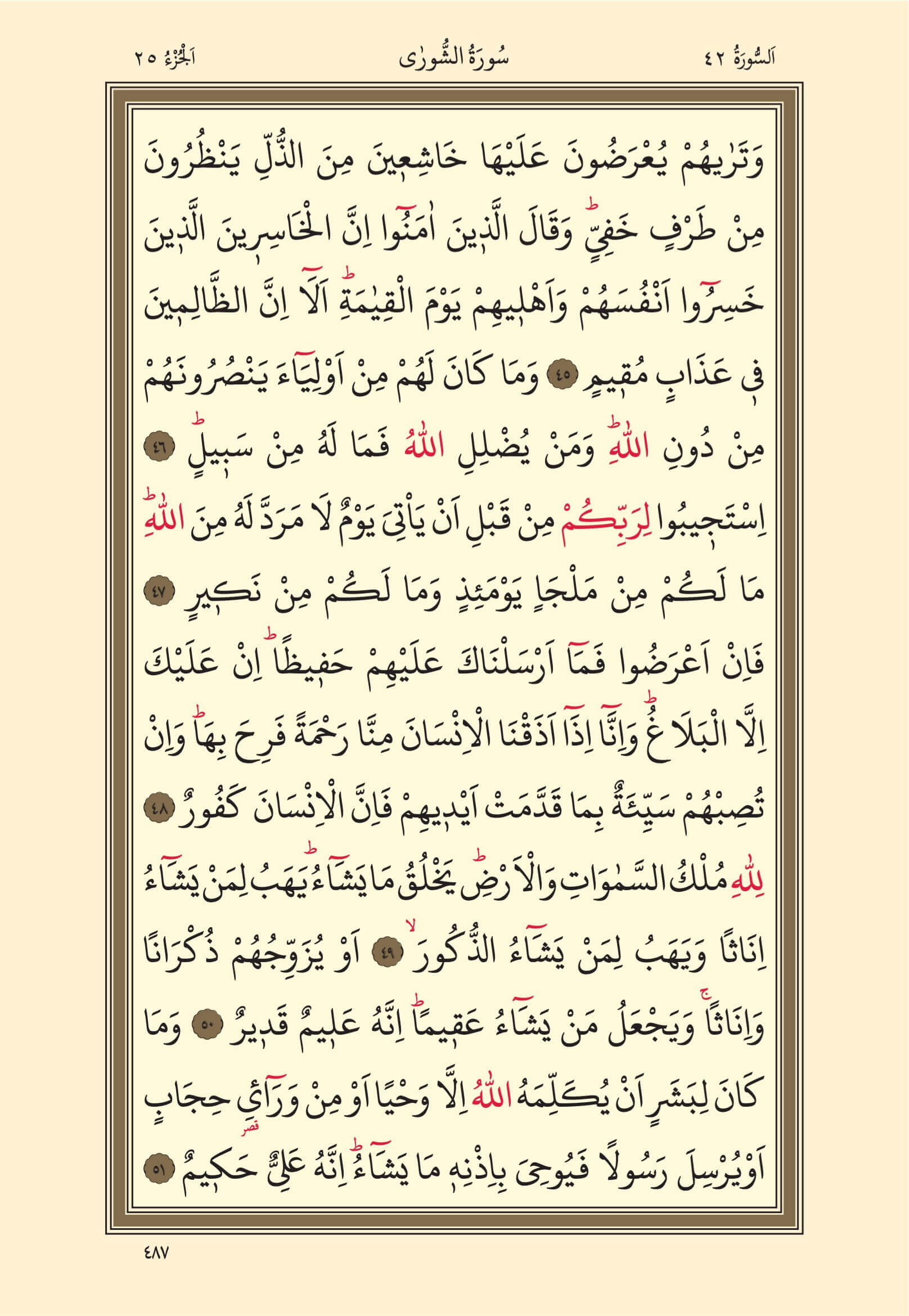 Şura Suresi – 487. Sayfa, – 25. Cüz - 2. Hizb