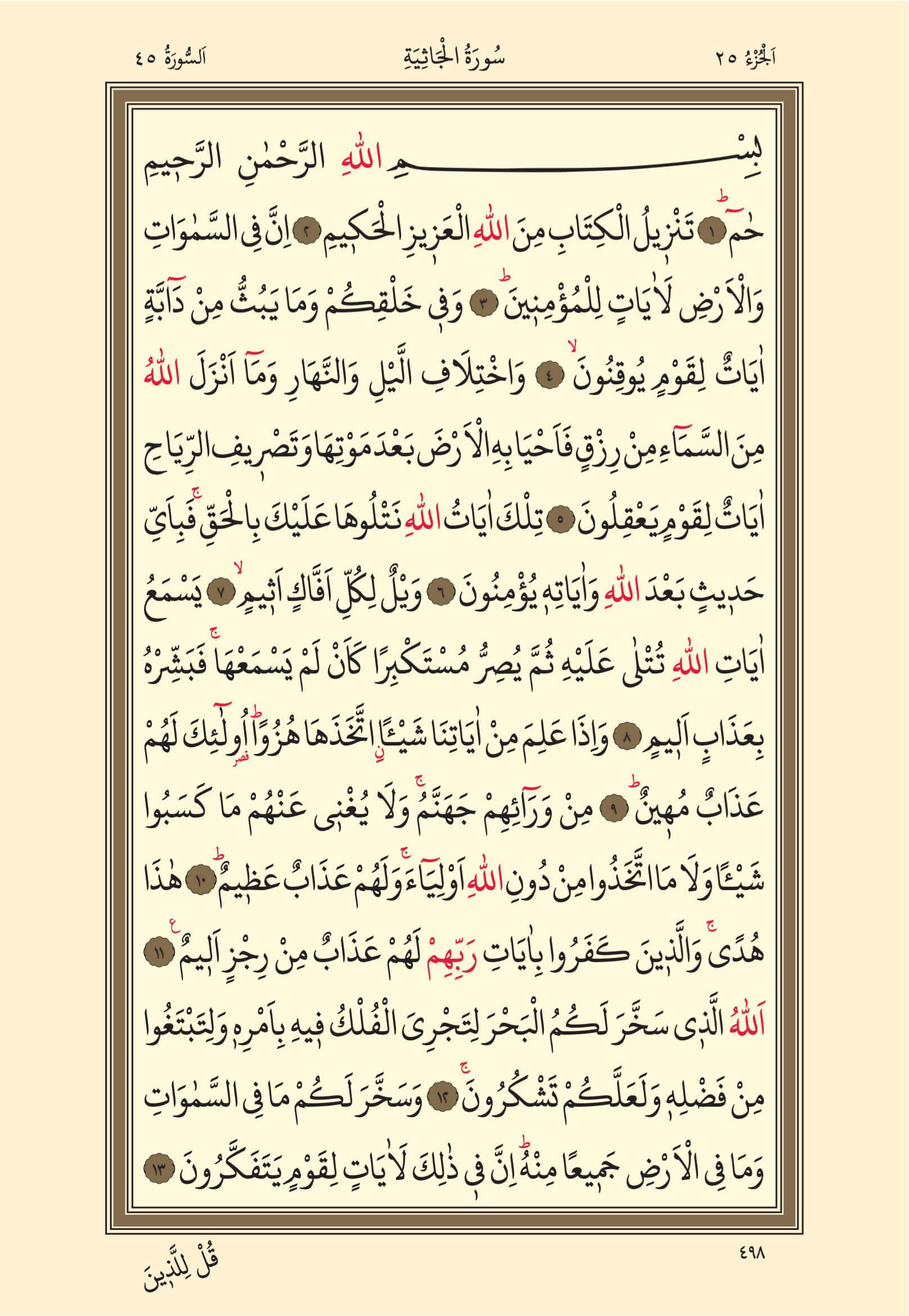 Casiye Suresi – 498. Sayfa, – 25. Cüz - 4. Hizb