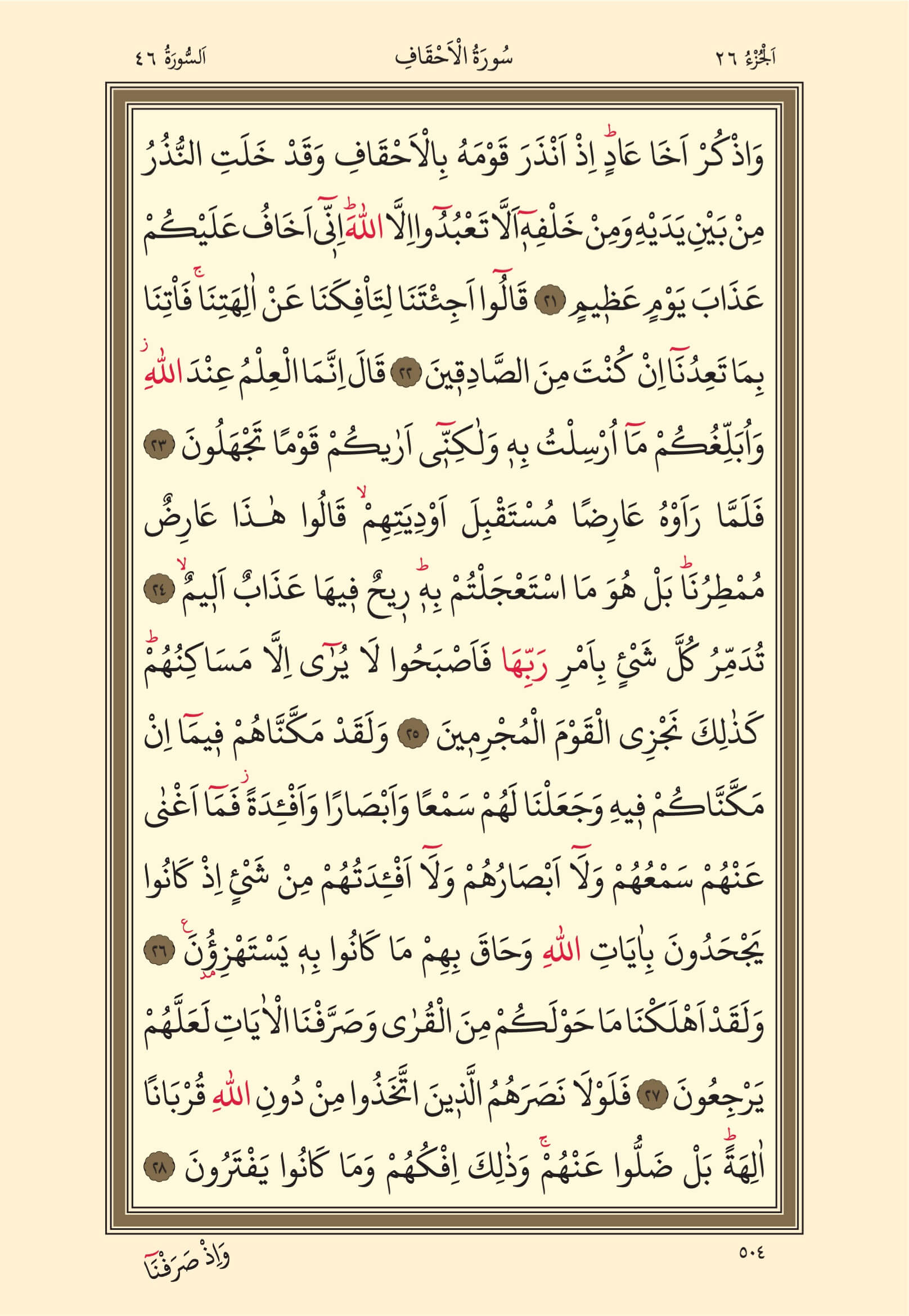 Ahkaf Suresi – 504. Sayfa, – 26. Cüz - 1. Hizb