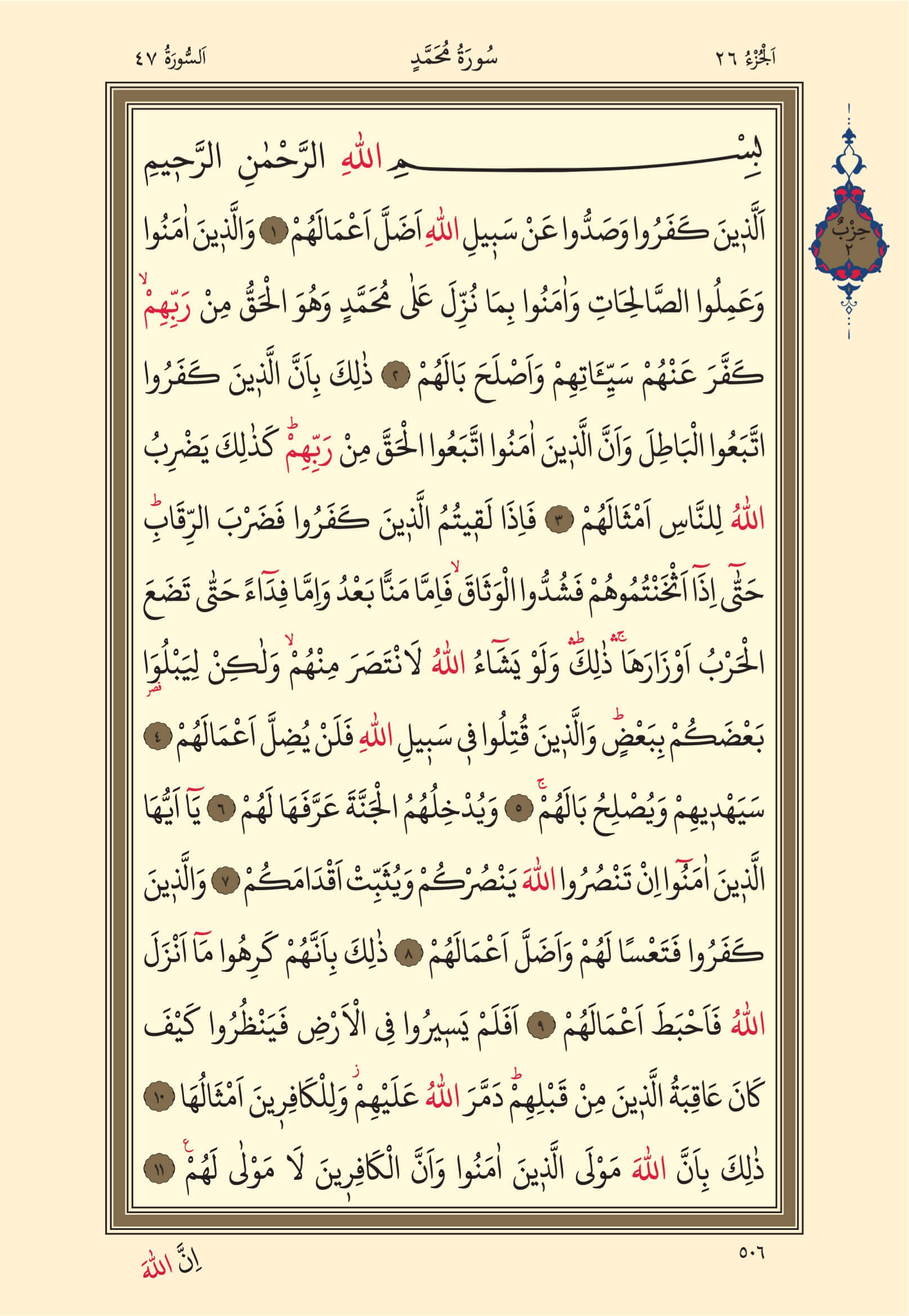 Muhammed Suresi – 506. Sayfa, – 26. Cüz - 2. Hizb