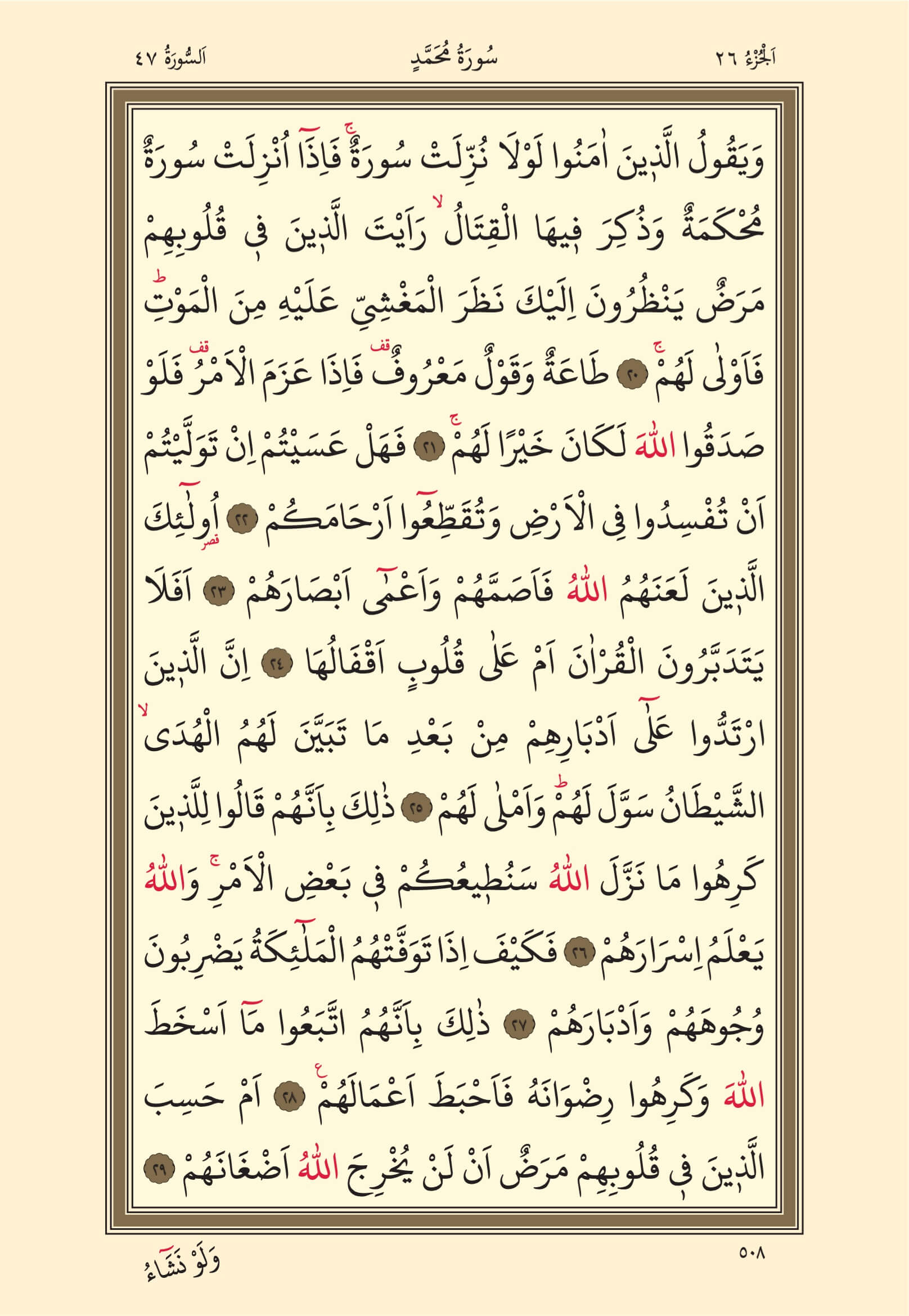 Muhammed Suresi – 508. Sayfa, – 26. Cüz - 2. Hizb