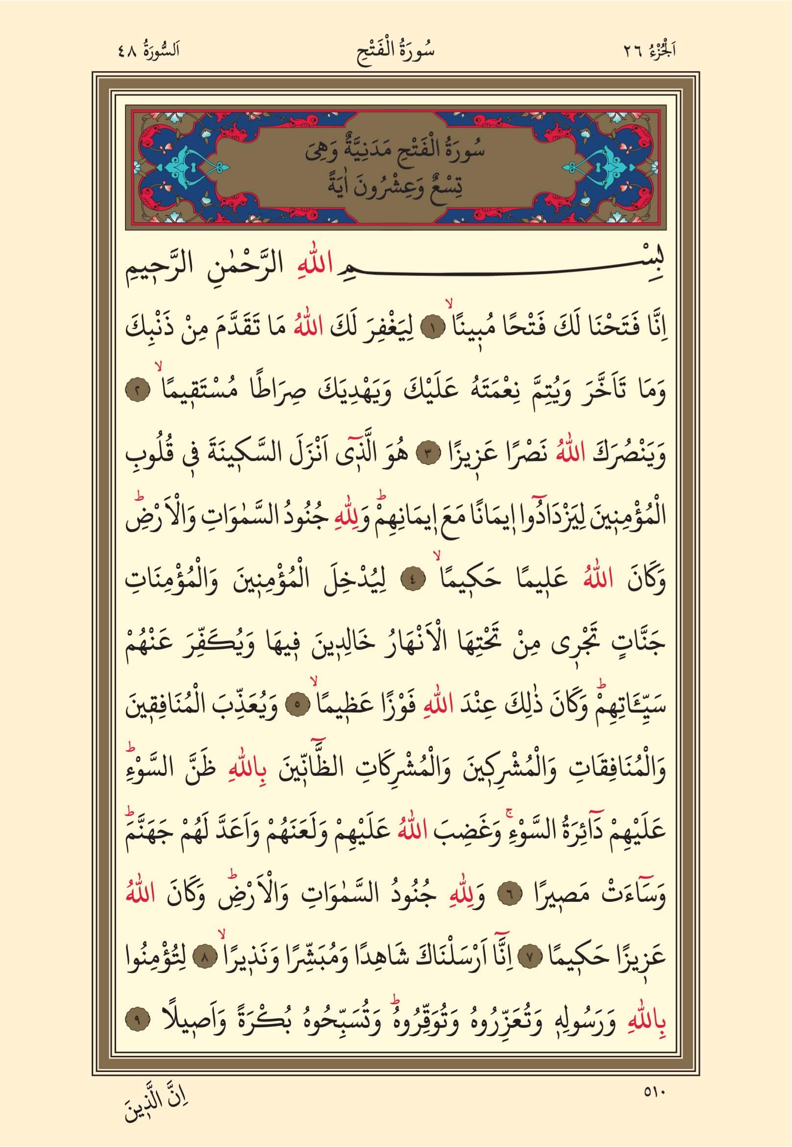 Fetih Suresi – 510. Sayfa, – 26. Cüz - 3. Hizb