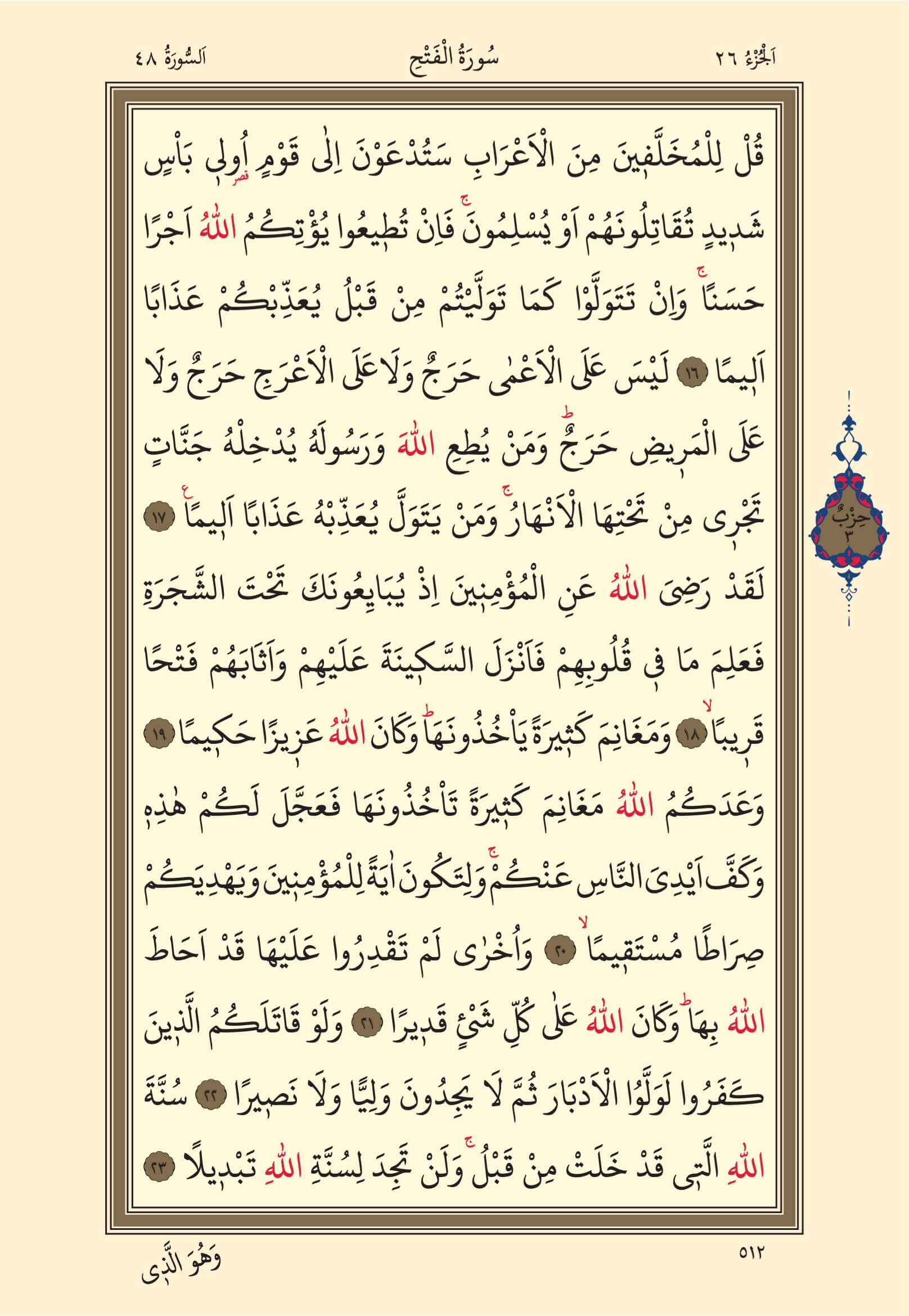 Fetih Suresi – 512. Sayfa, – 26. Cüz - 3. Hizb