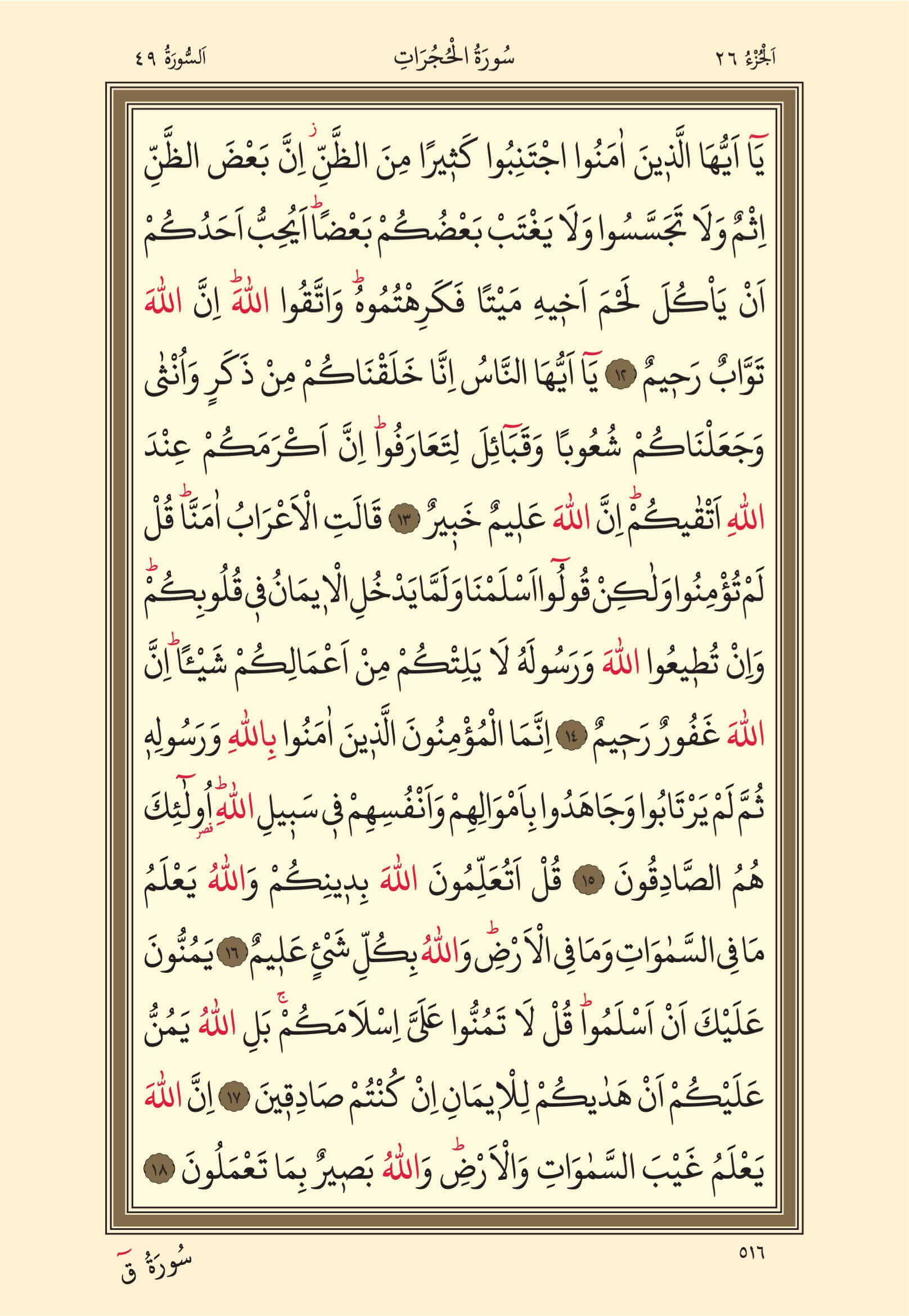Hucurat Suresi – 516. Sayfa, – 26. Cüz - 4. Hizb